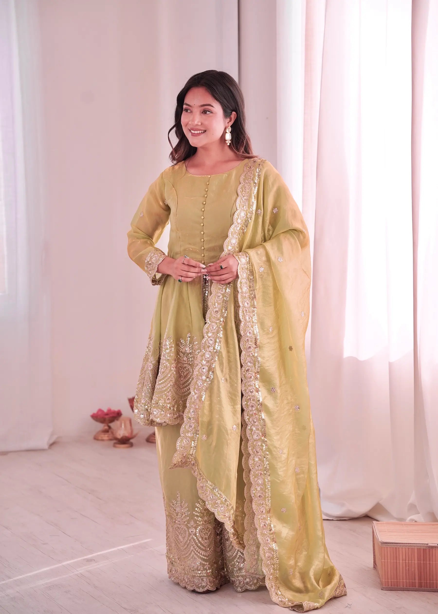 Pale Yellow Fendi Silk Embroidery salwar suit