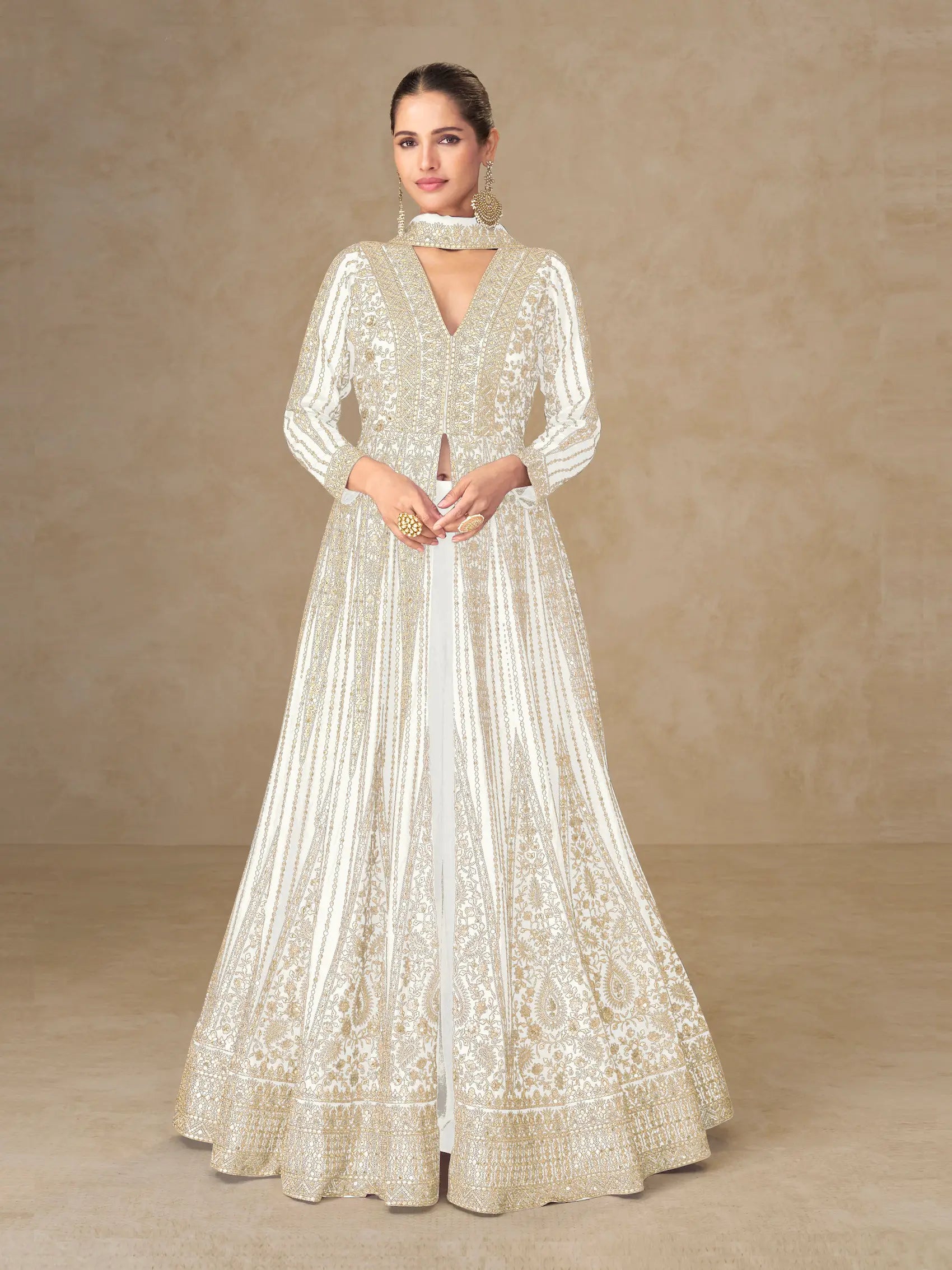Pearl White Chinon Embroidery Gown