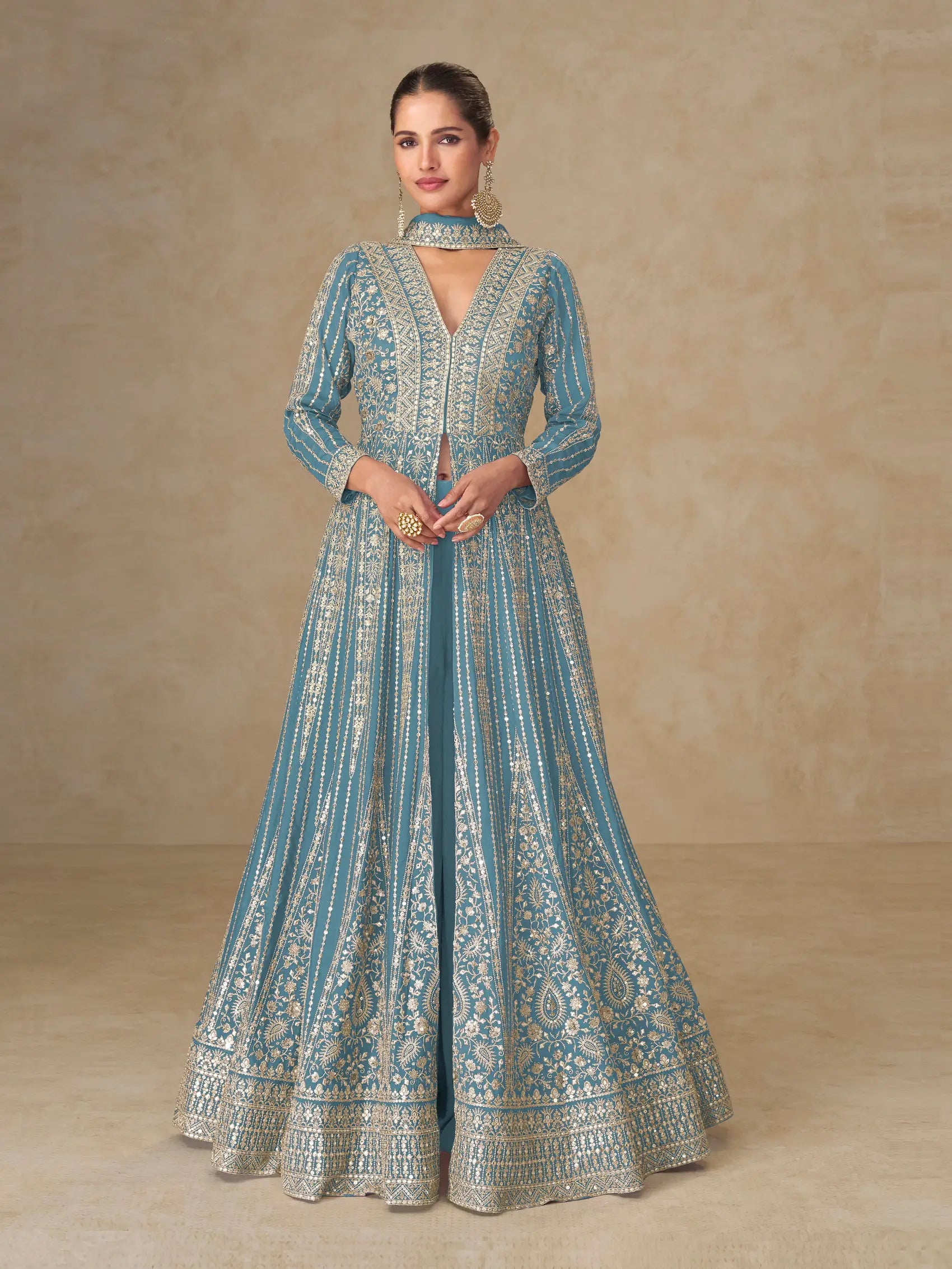 Sky Blue Chinon Embroidery Gown