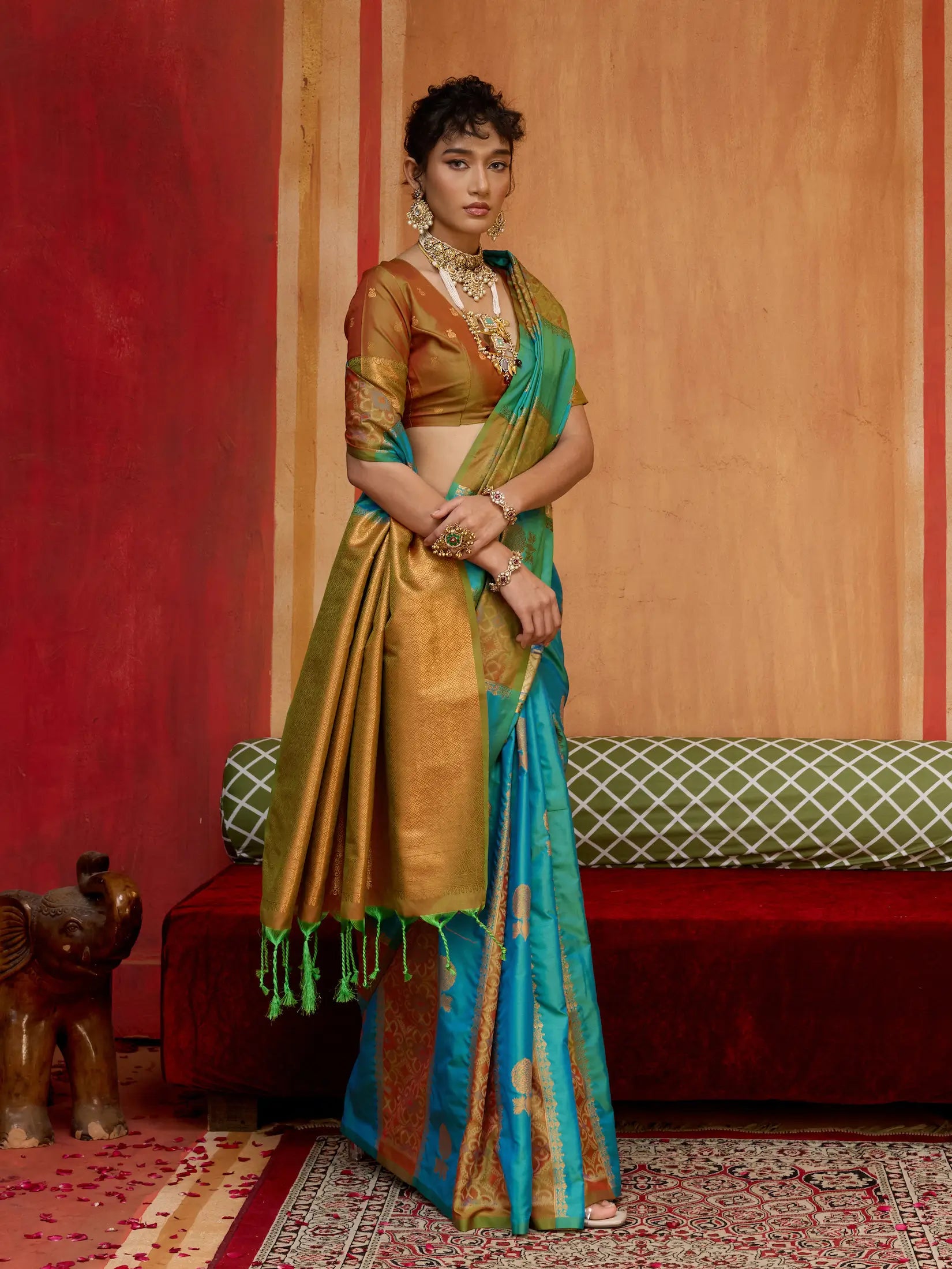 Work: Patola & Zari Weaving Work With Contrast Pallu