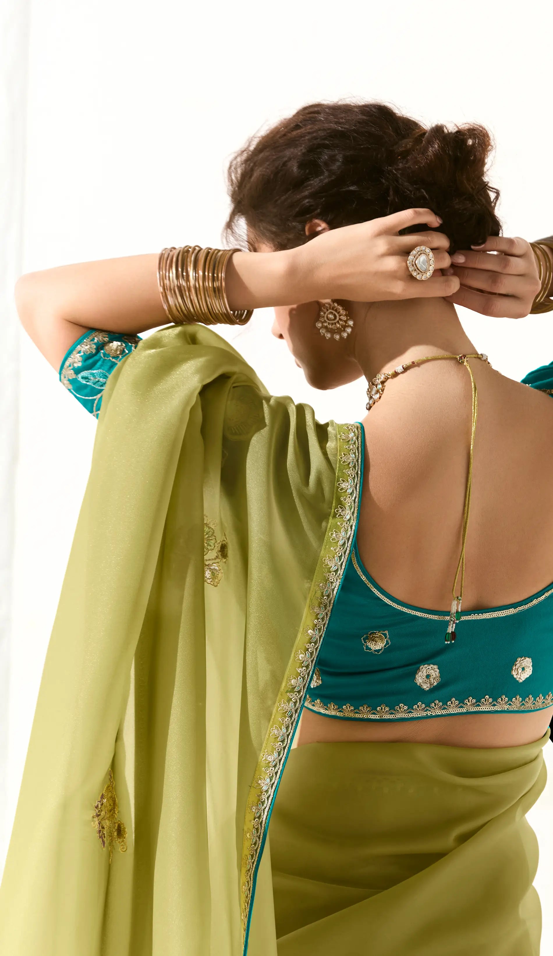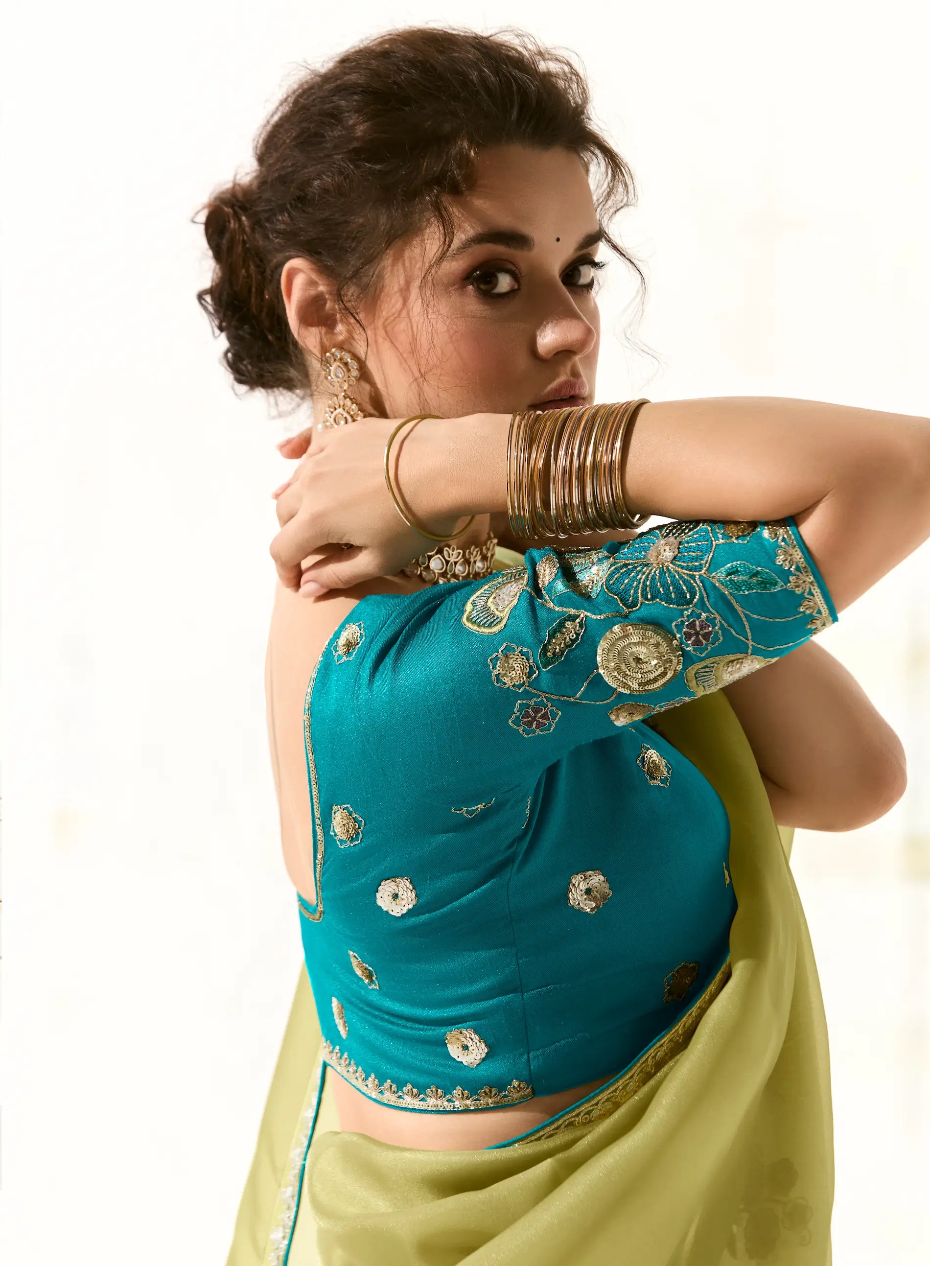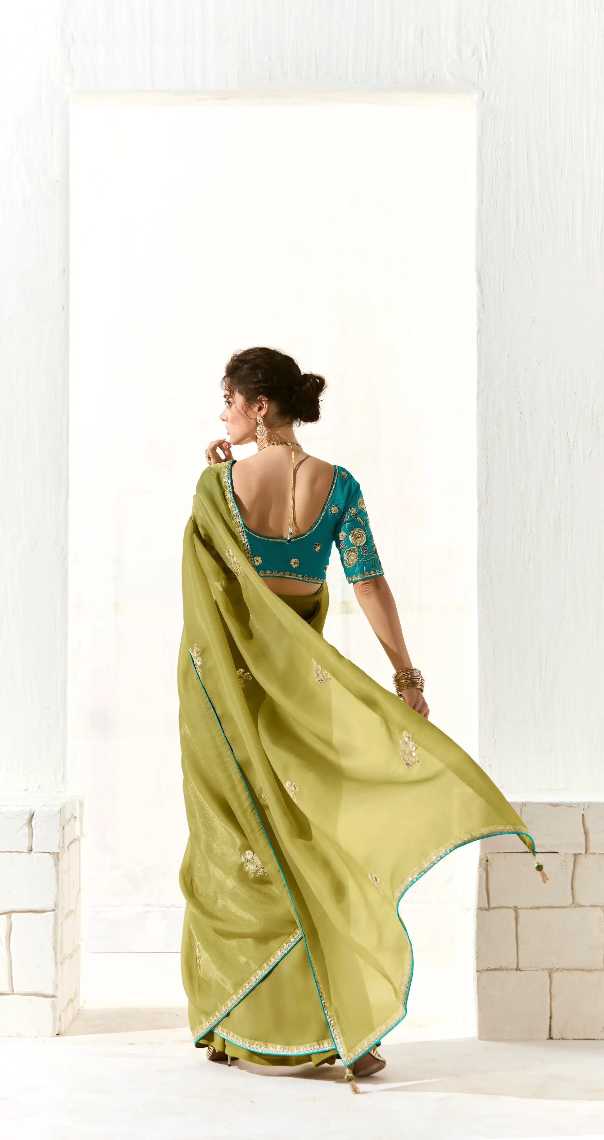 Lime Green Organza Saree Blouse With Heavy Embroidery work