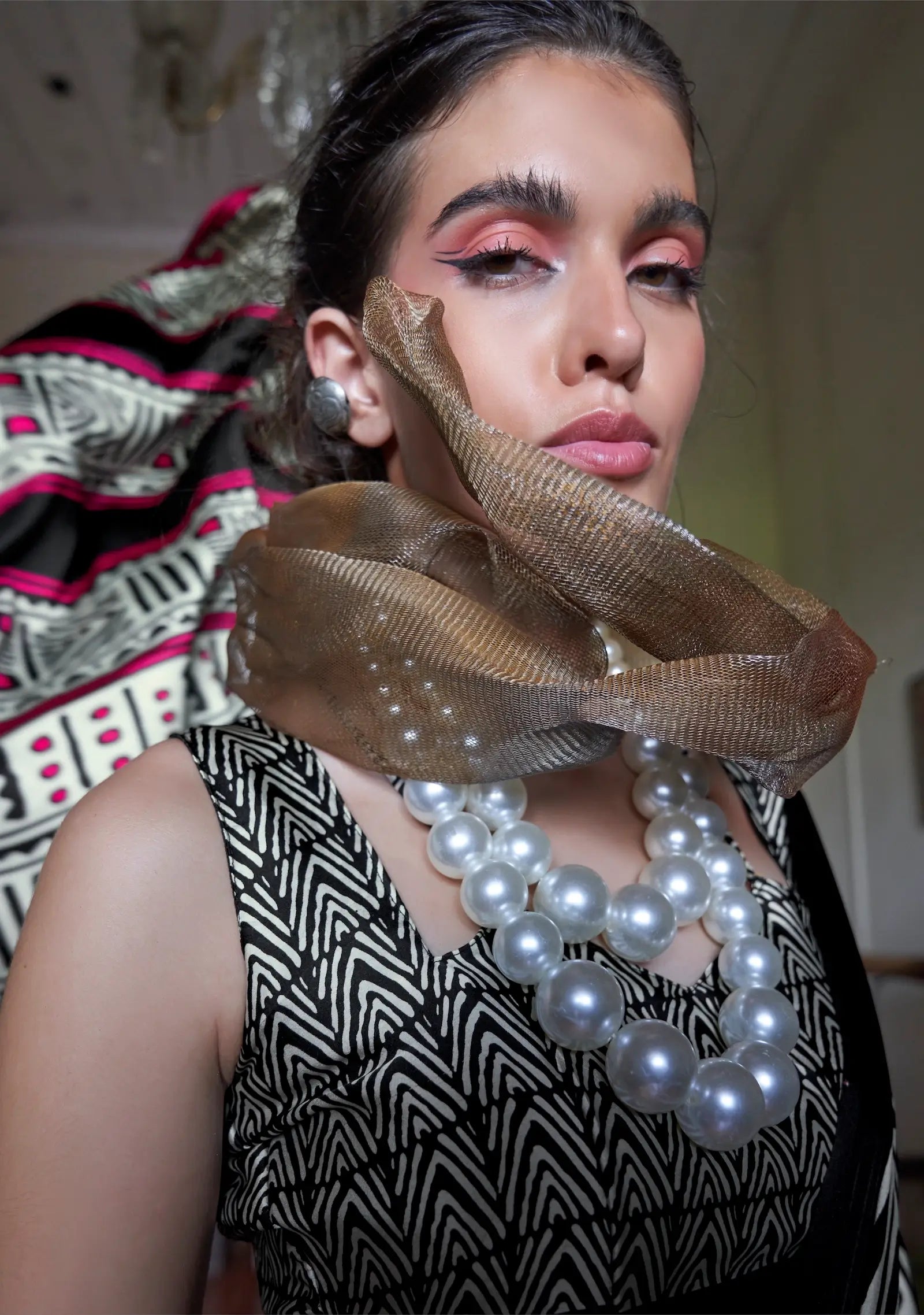 Black-White Satin Geometric Print Saree