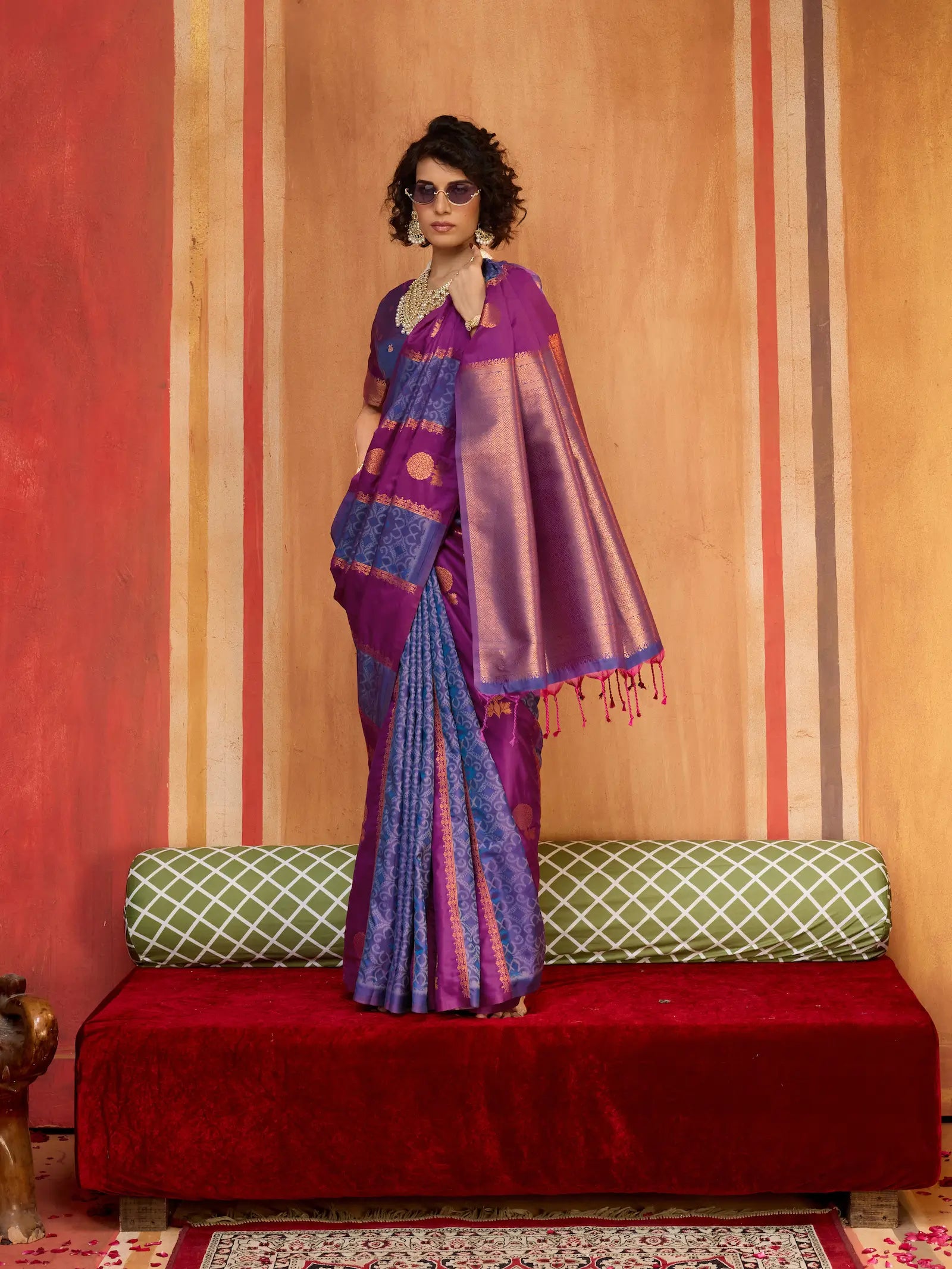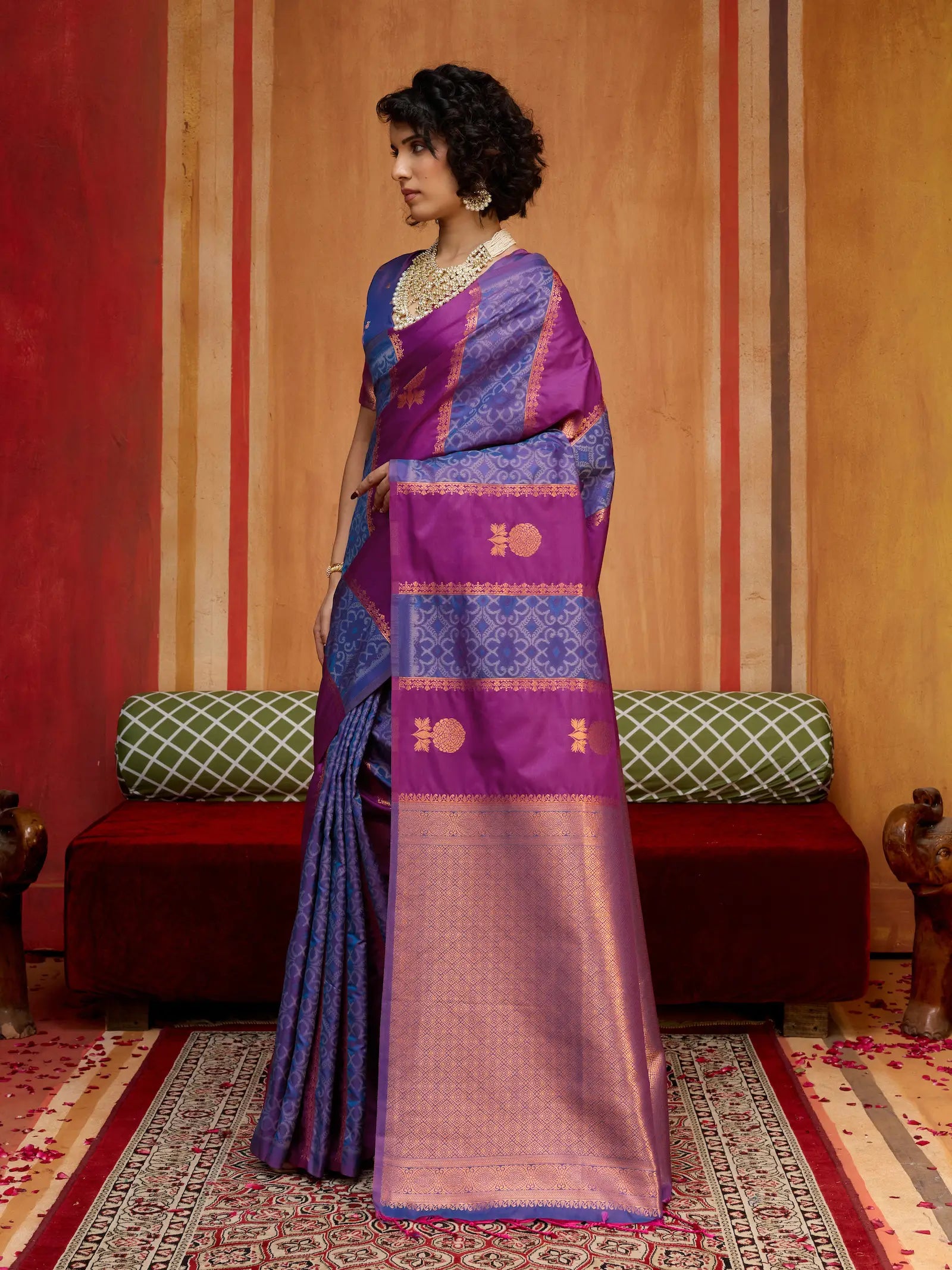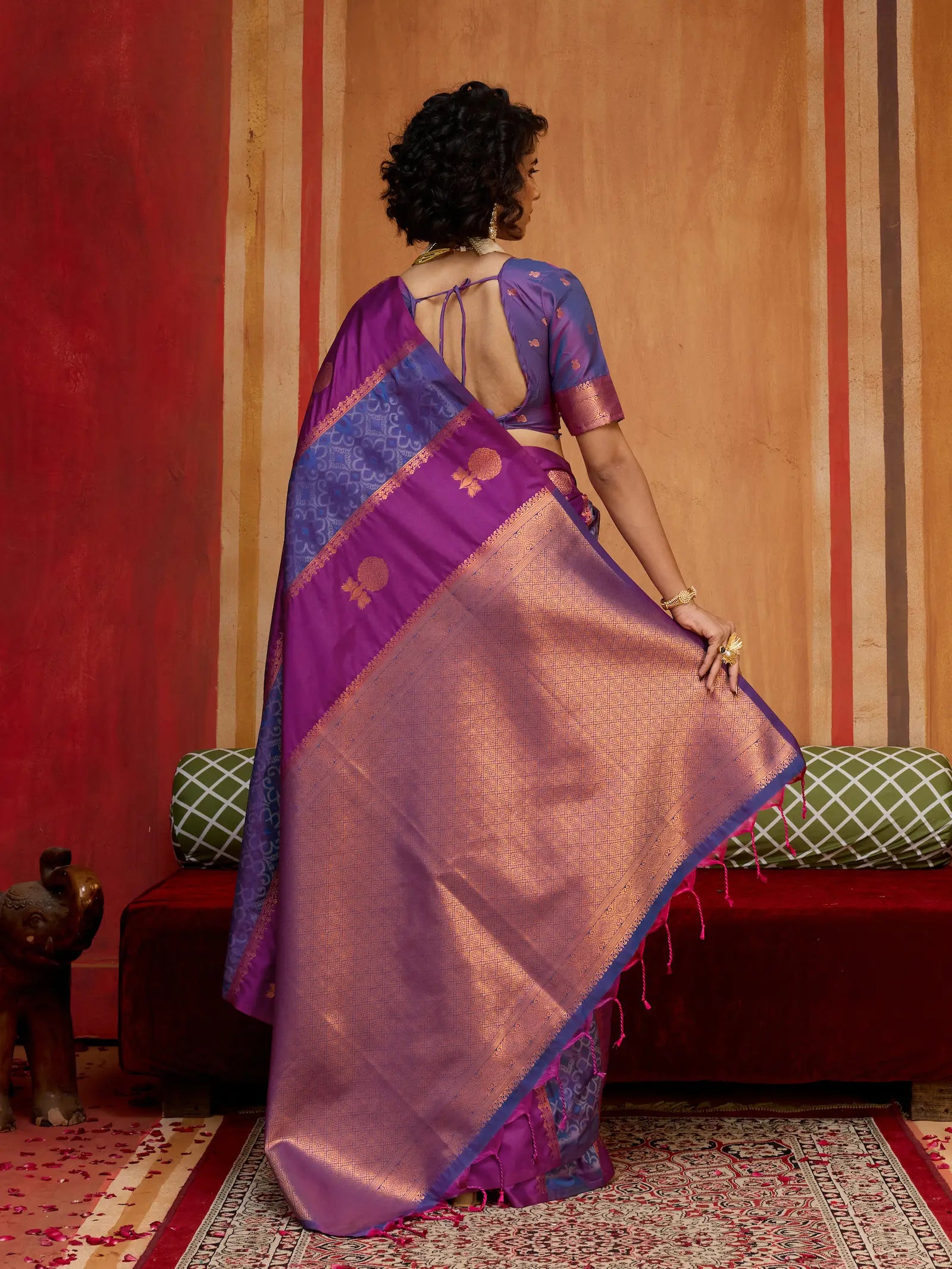 Work: Patola & Zari Weaving Work With Contrast Pallu