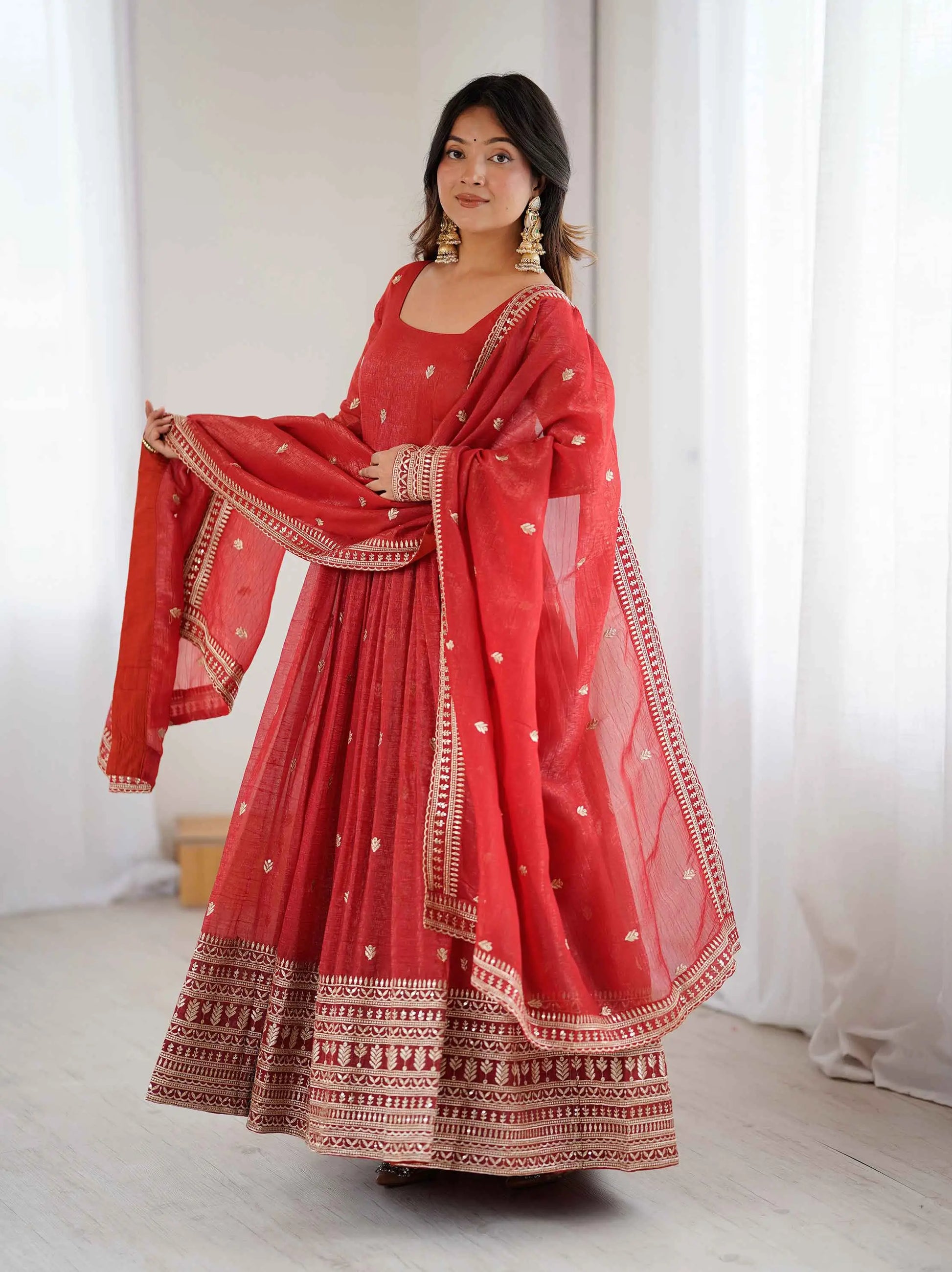 Rust Orange Gown With Sequins Embroidery Work