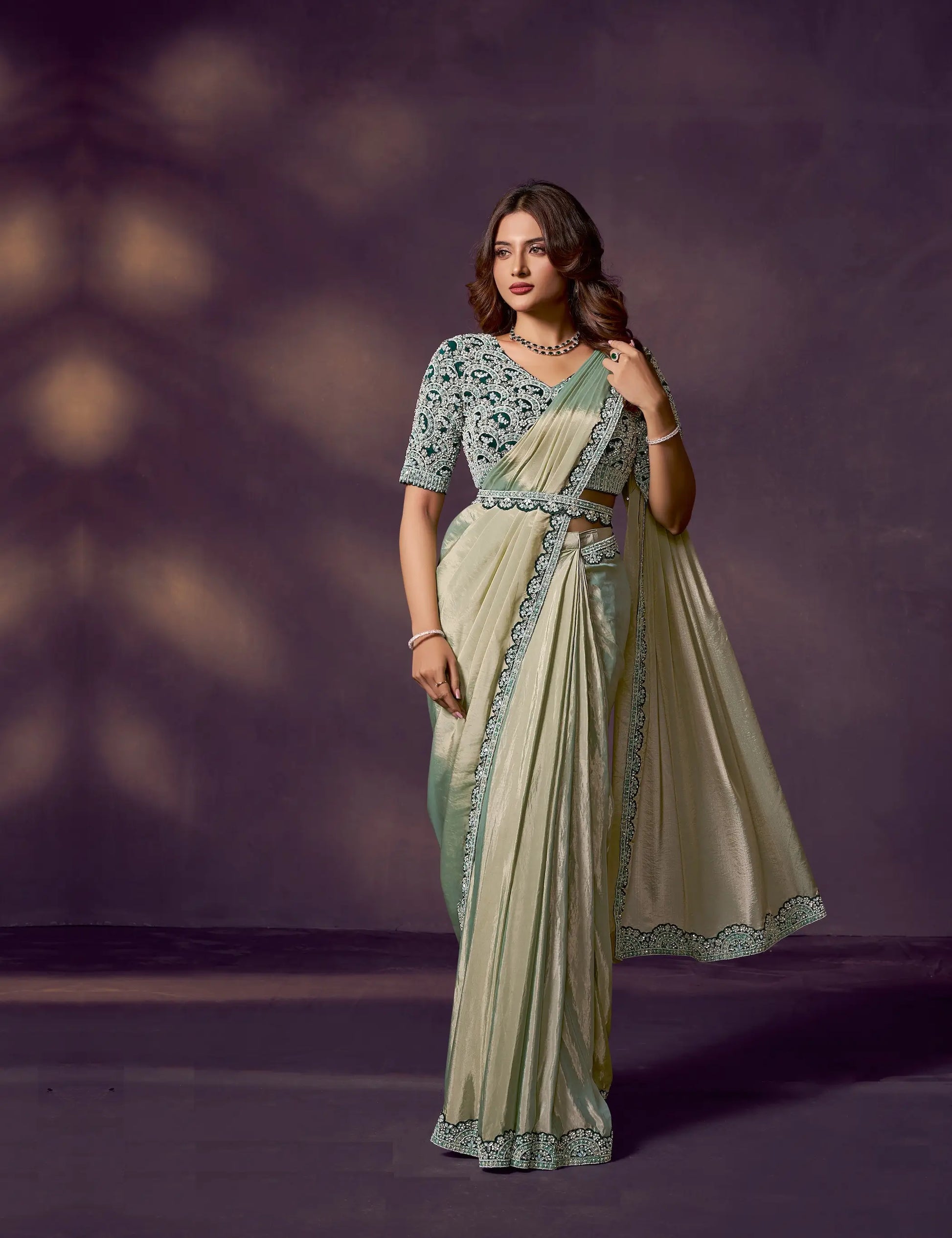 Golden Olive One Minute Saree With Embroidery & Hand Work
