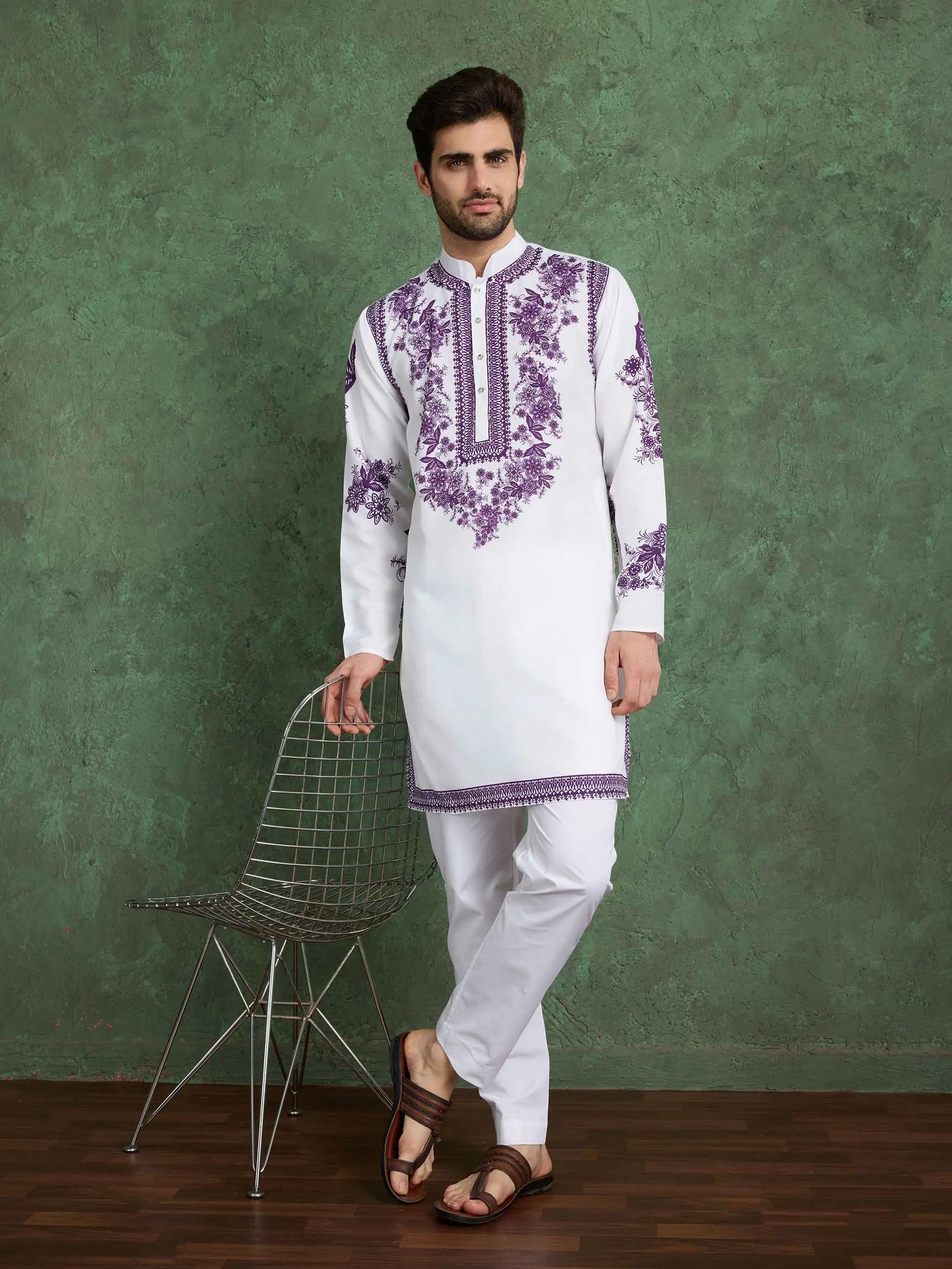 Awesome White Rayon Kurta With Beautiful Purple Digital Print