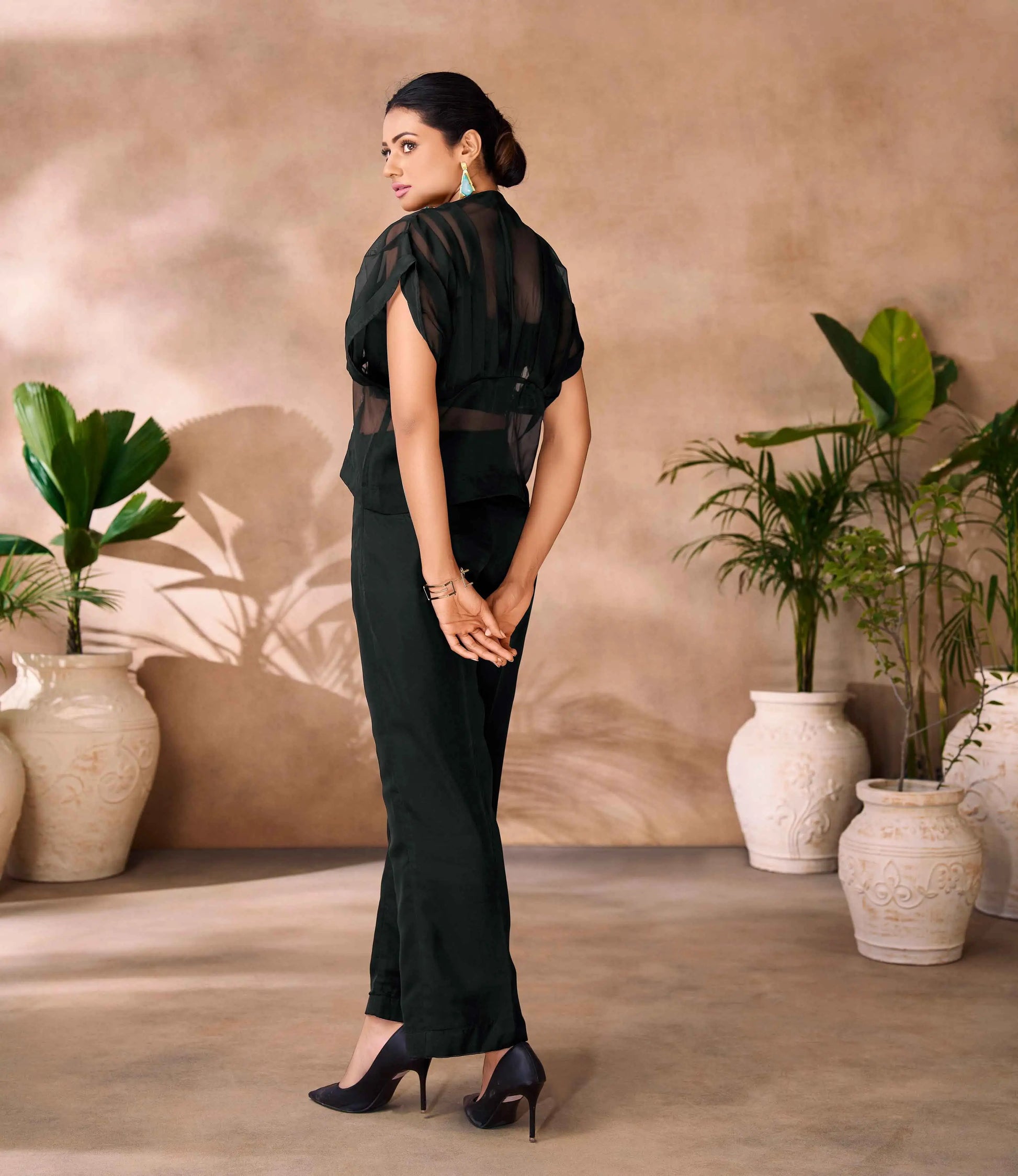 Beautiful Designer Black Organza Floral Hand Work Co- Ord Set