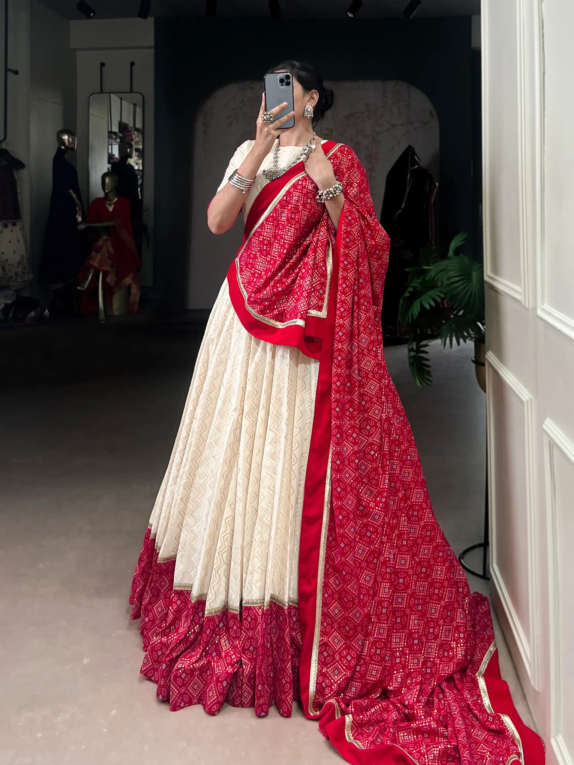 We also offer a made-to-measure option! Simply measure yourself using the points shown in the chart (for blouse and lehenga), and mention your measurements in the notes section at checkout. This includes details like shoulder, chest, blouse length, sleeve length, waist, hips, length, and whether you prefer pads or cancan.