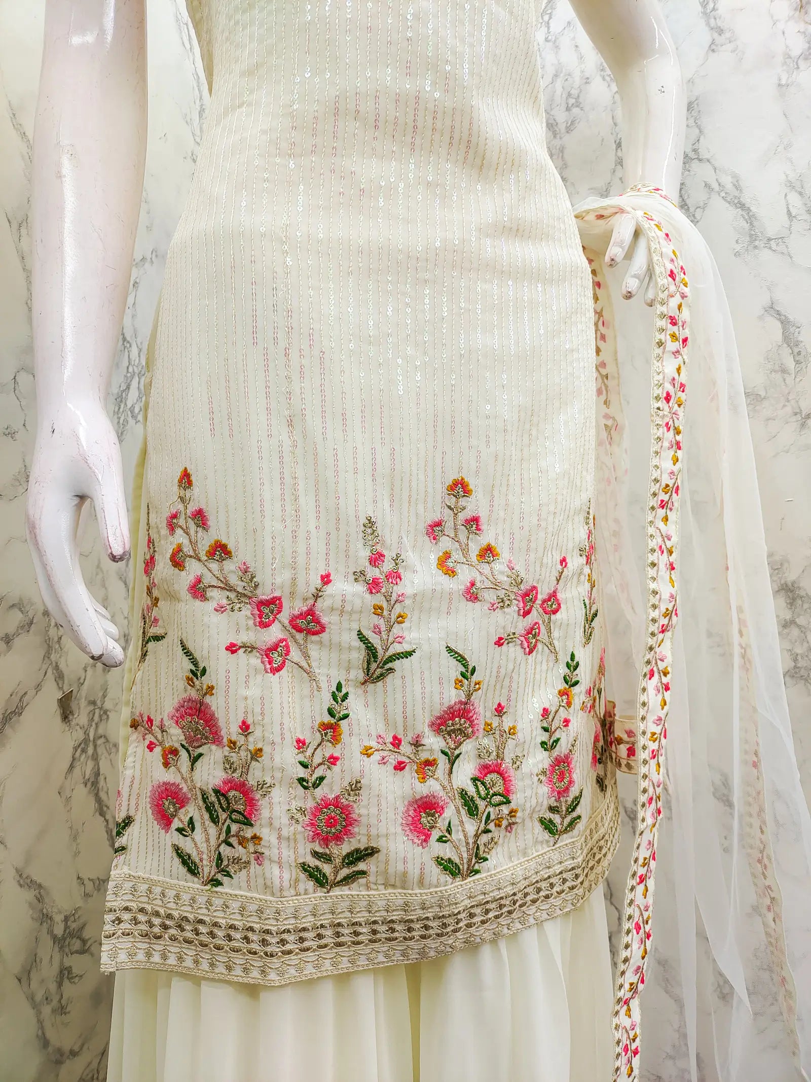 Beige Georgette Sequence Embroidery Work Salwar Suit