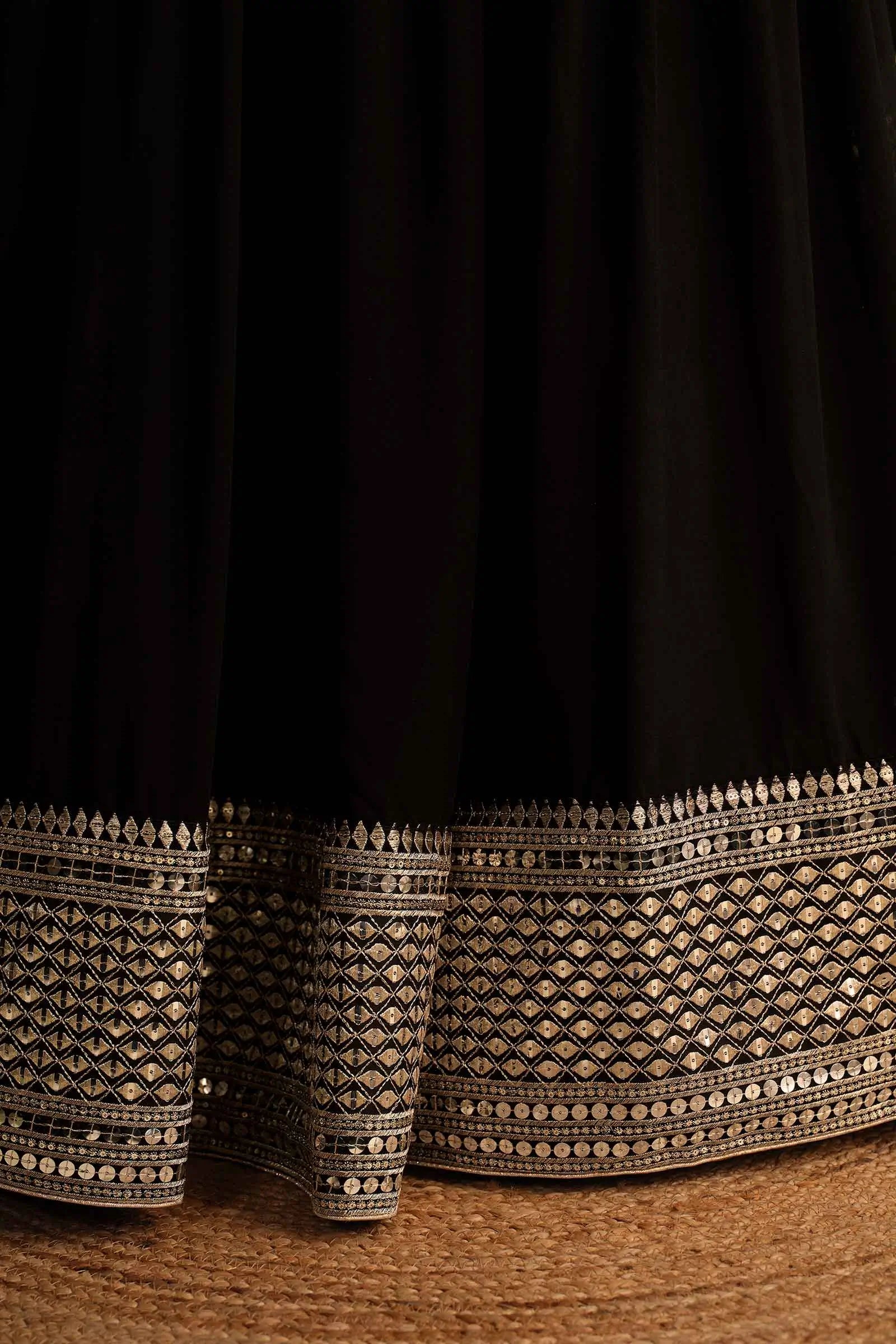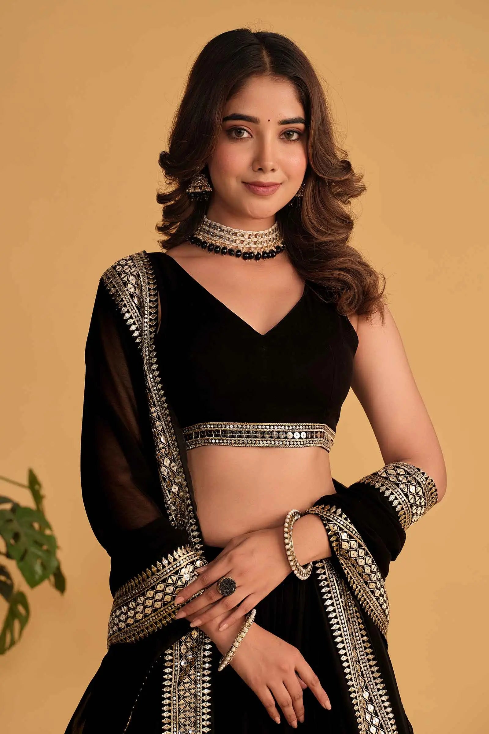 Black Georgette Lehenga With sequins And Zari Embroidered Work With Dupatta