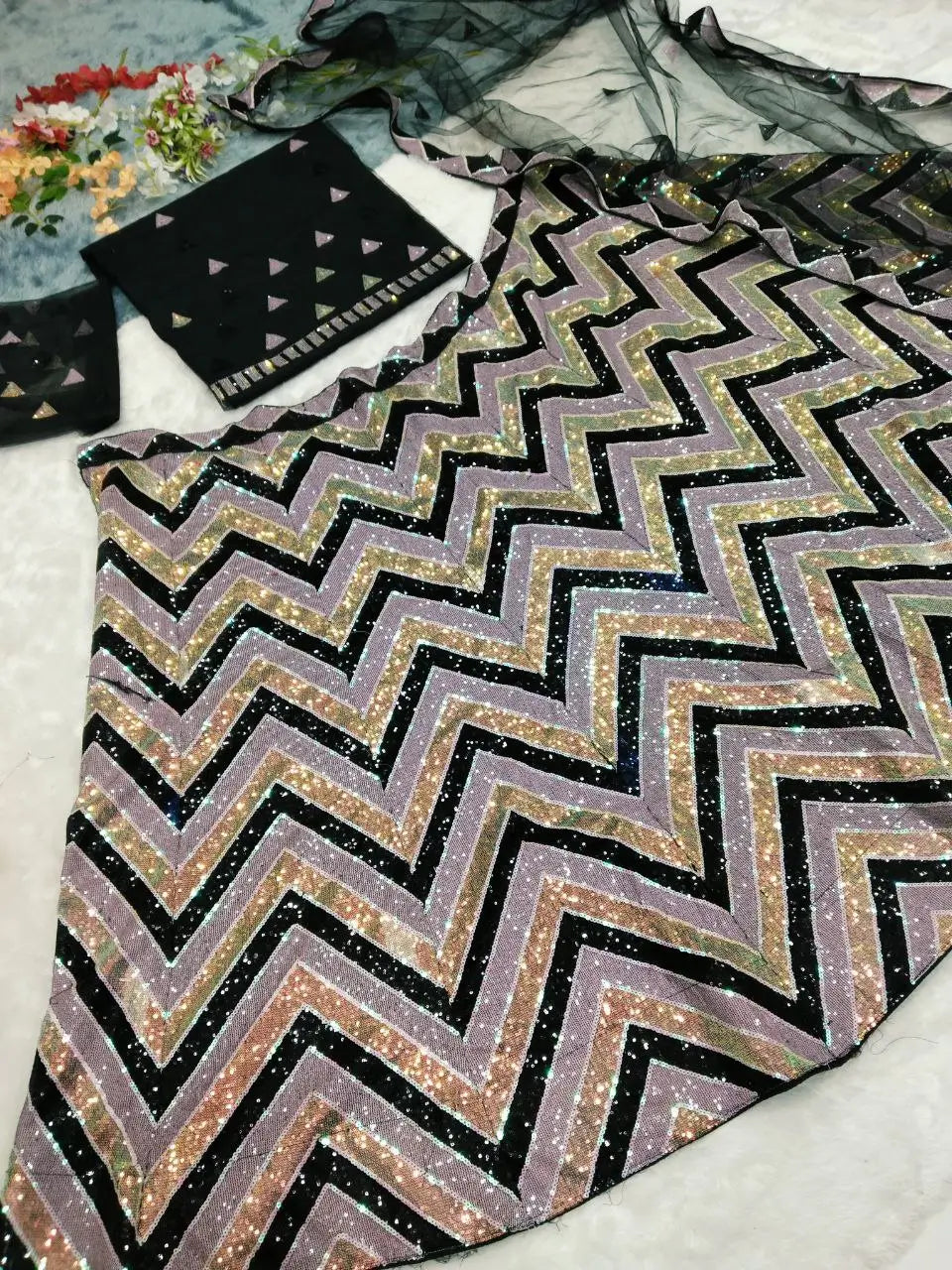 Black Heavy Multi Sequins And Thread Embroidery Work Net Lehenga Choli
