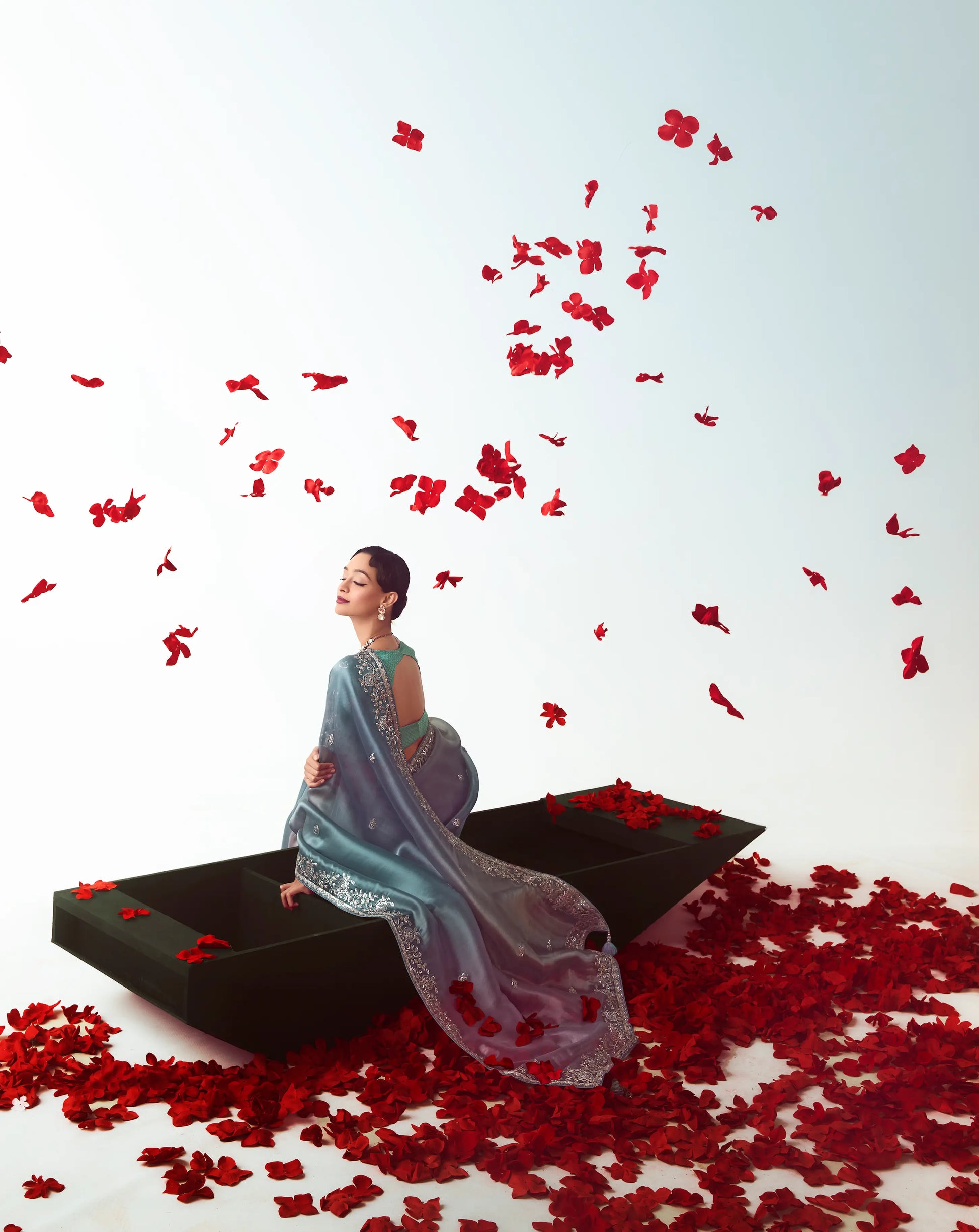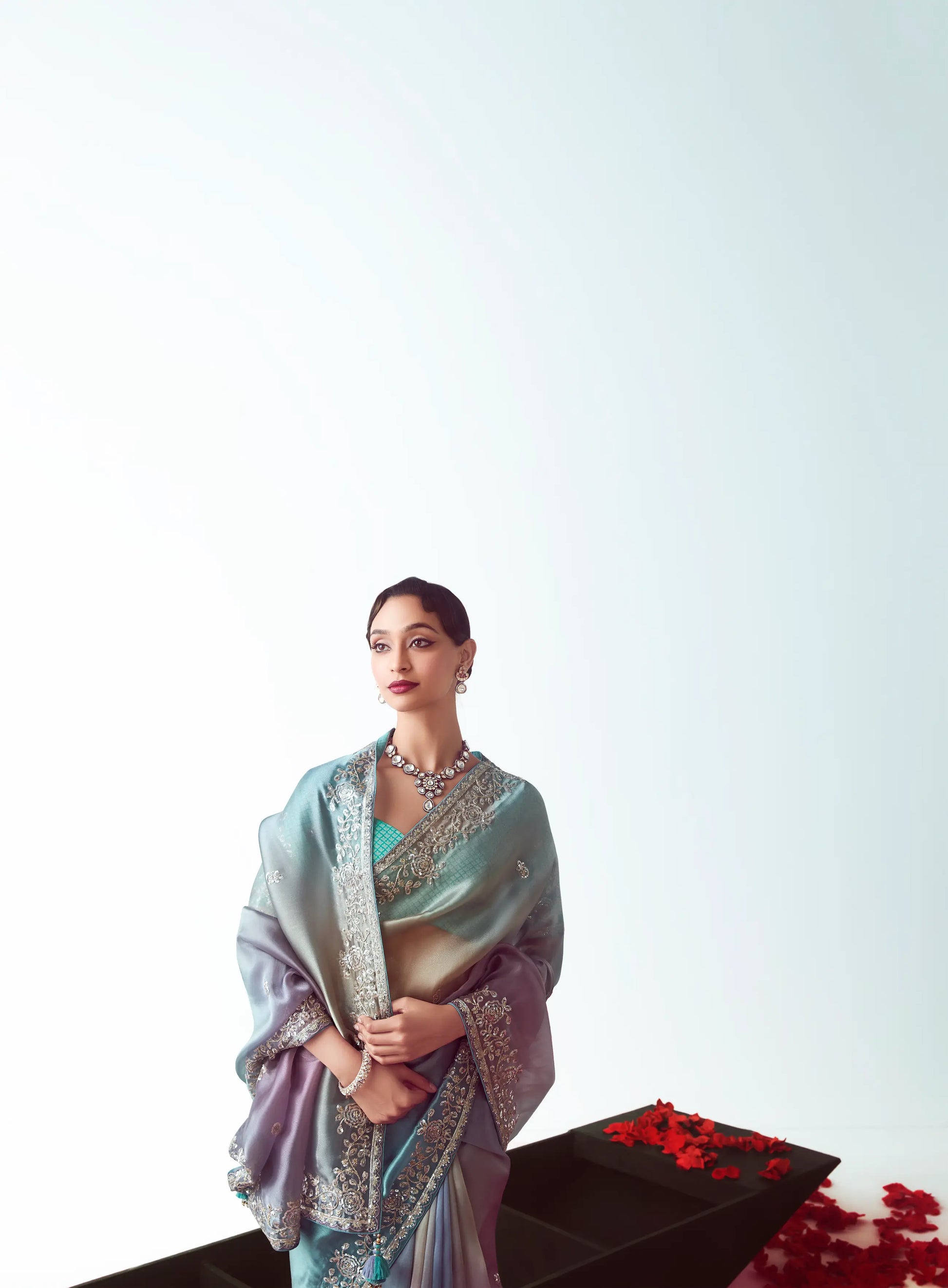 Blue Multicolor Party Wear Saree With Embroidery & Hand Work