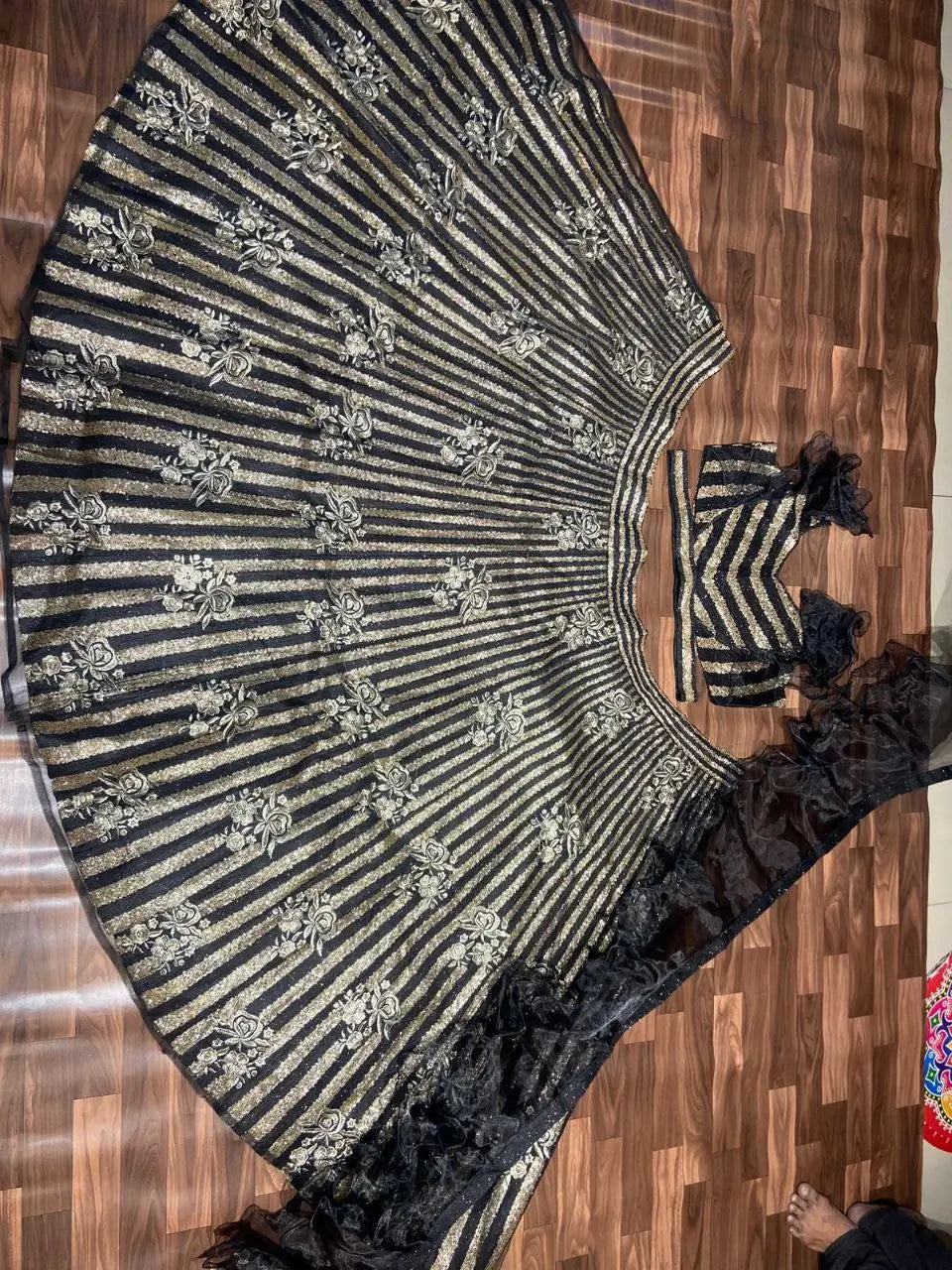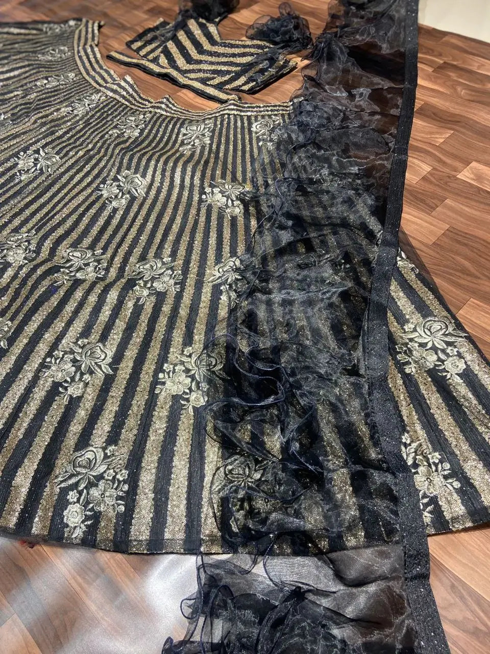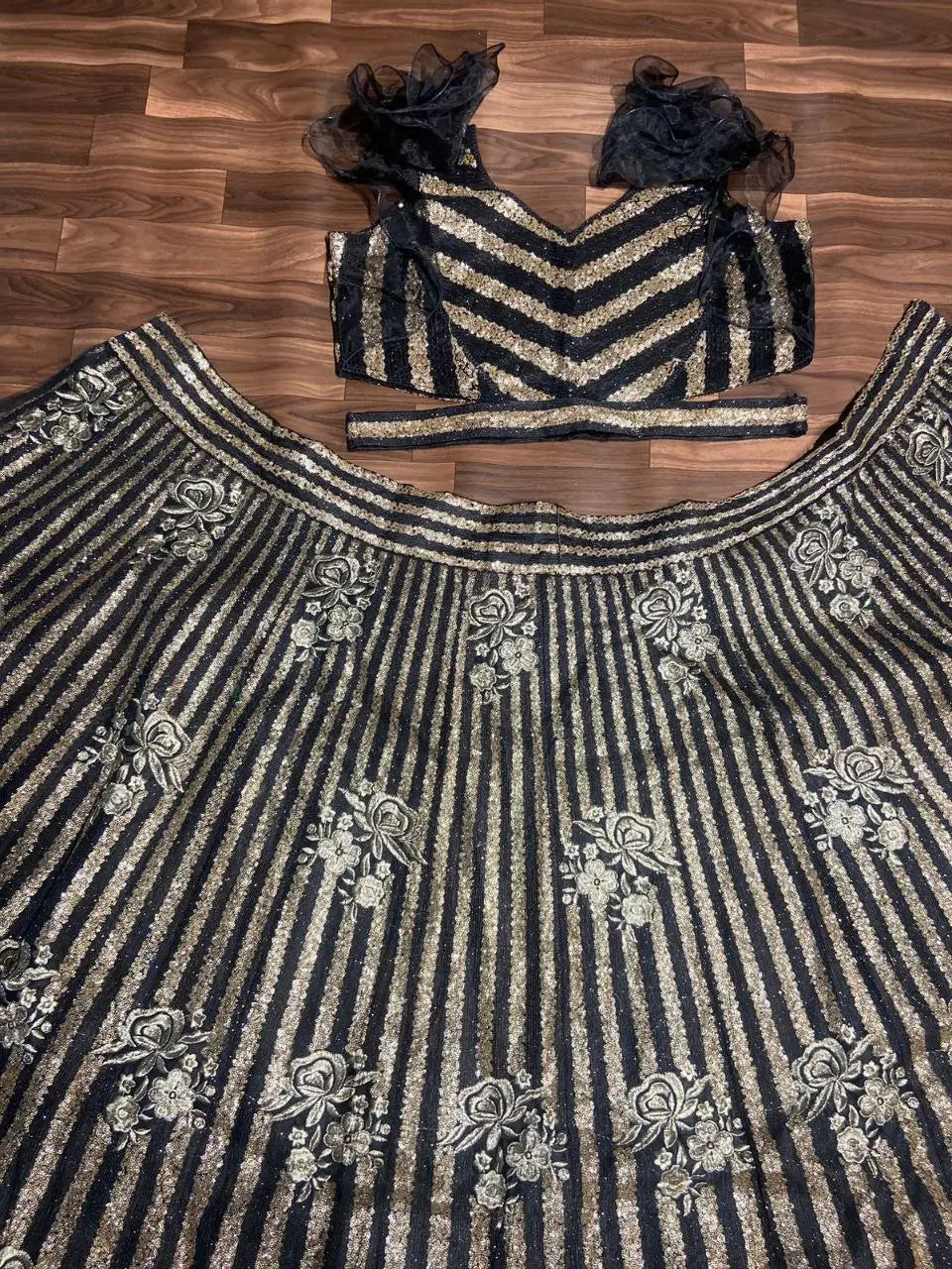Designer Black Party Wear Lehenga With Dori Sequins Embroidery Work
