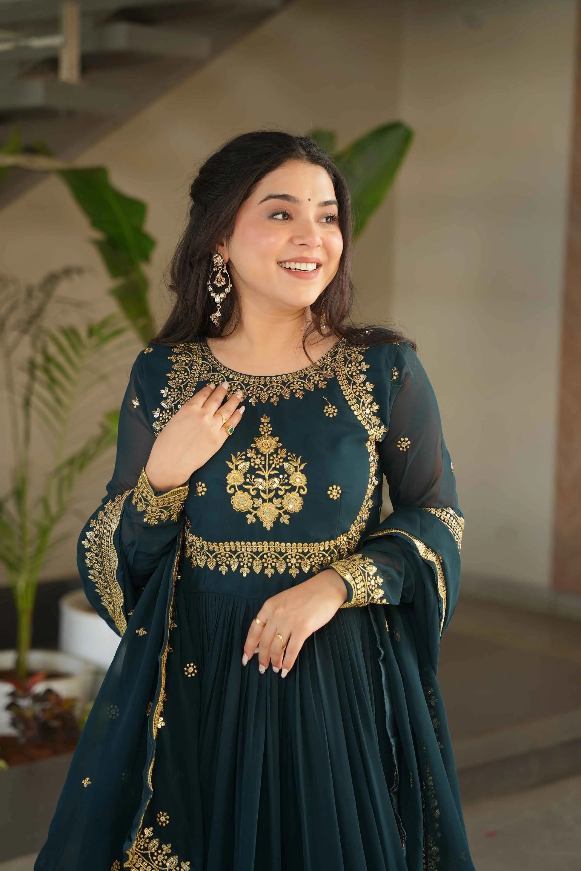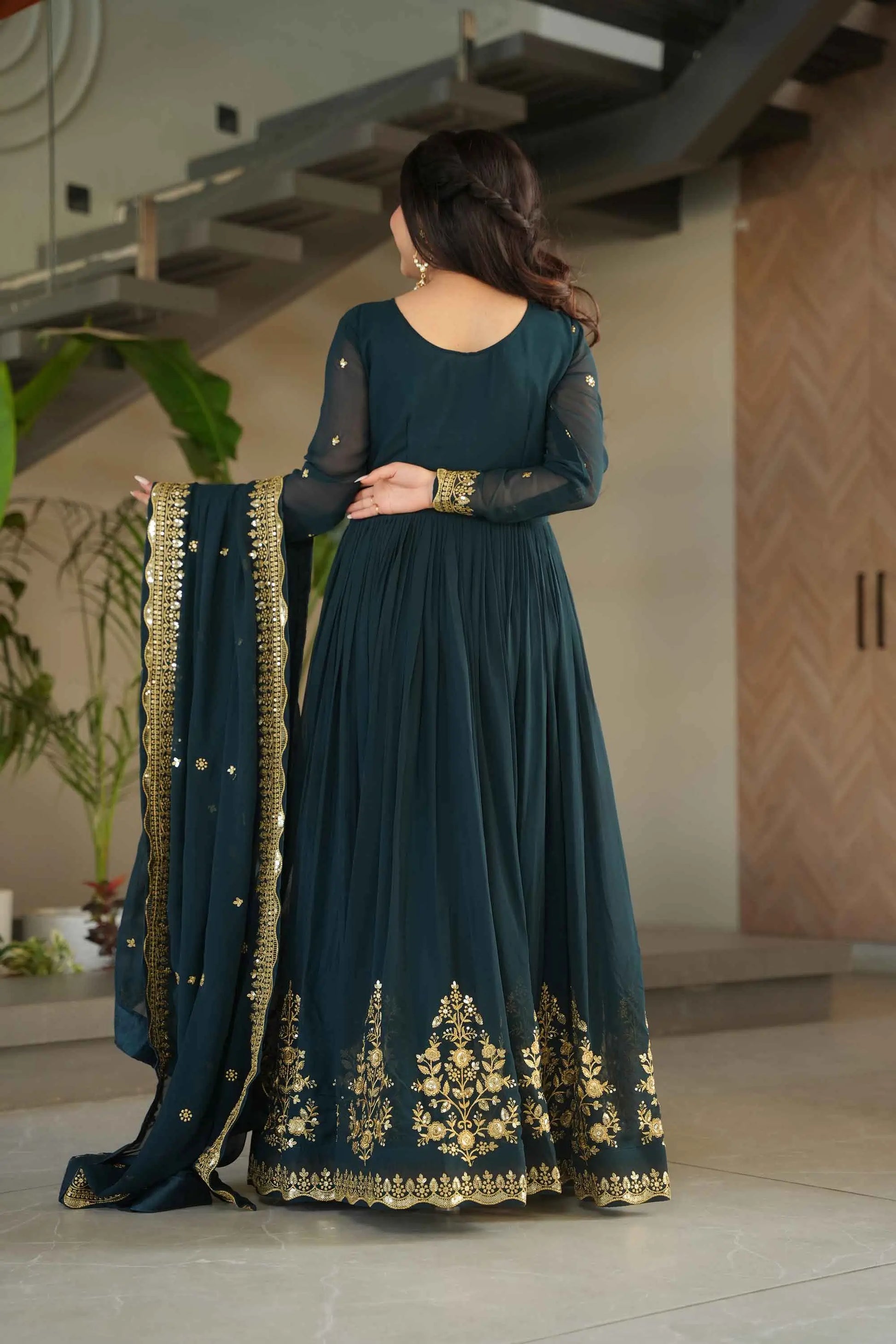 Designer Rama Zari Sequins Embroidery Work Georgette Gown With Dupatta
