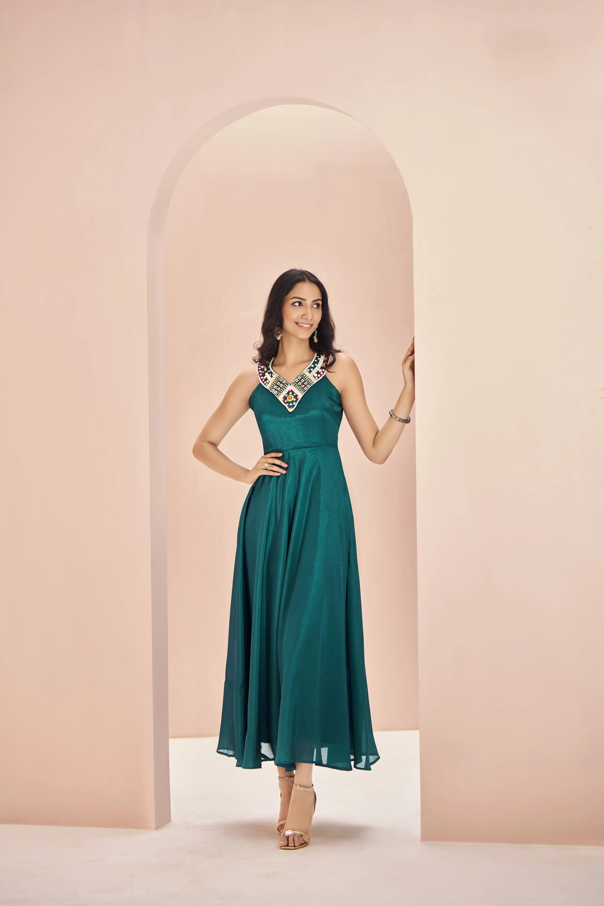 Celebrate the upcoming wedding season with this beautiful Pure Blooming Green Chinon Fabric Kurta.  Ready to wear, it’s the perfect choice for festive occasions, offering both elegance and comfort.
