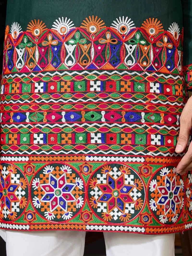 Green Multi Thread And Real Mirror Work Kurta Set For Navratri