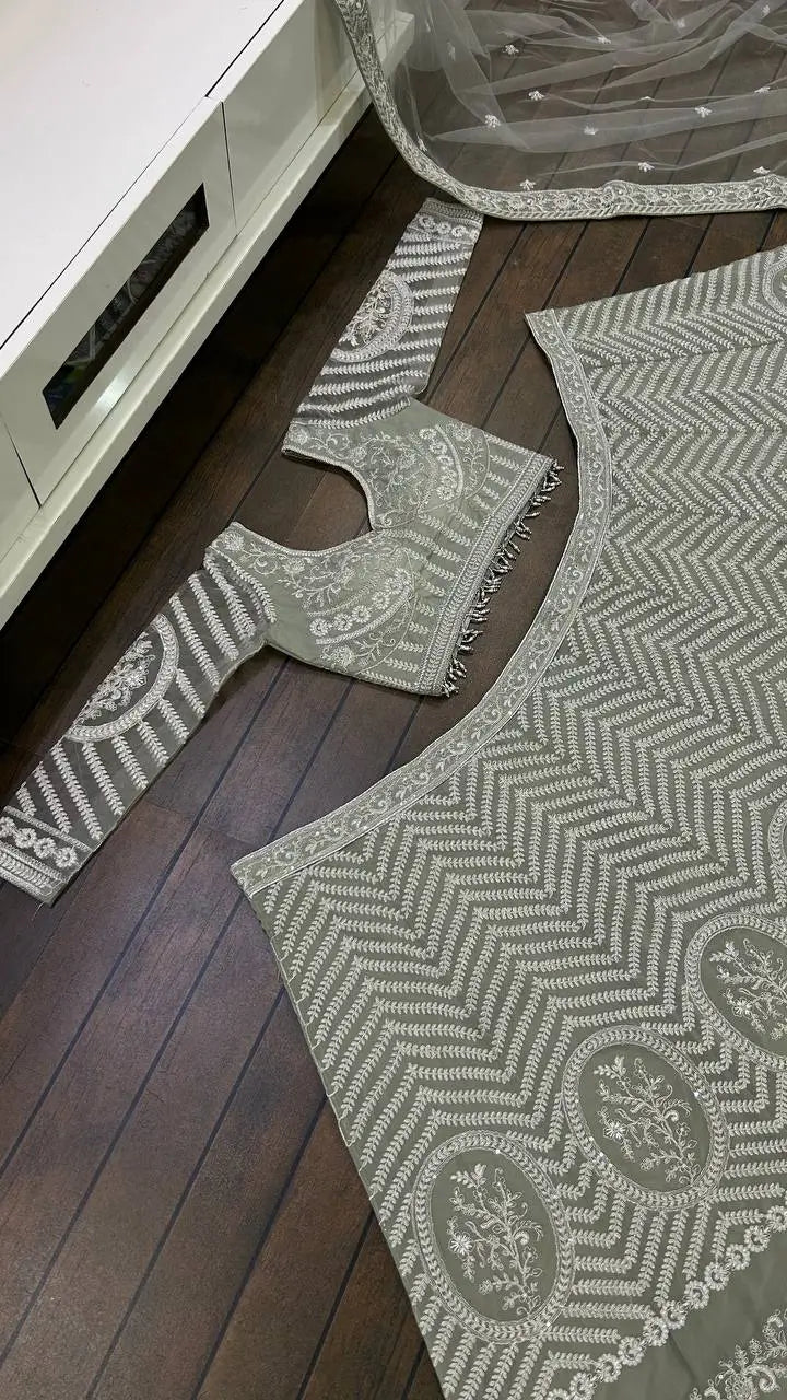 Grey Georgette Sequence, Zari & Dori Work Lehenga Choli