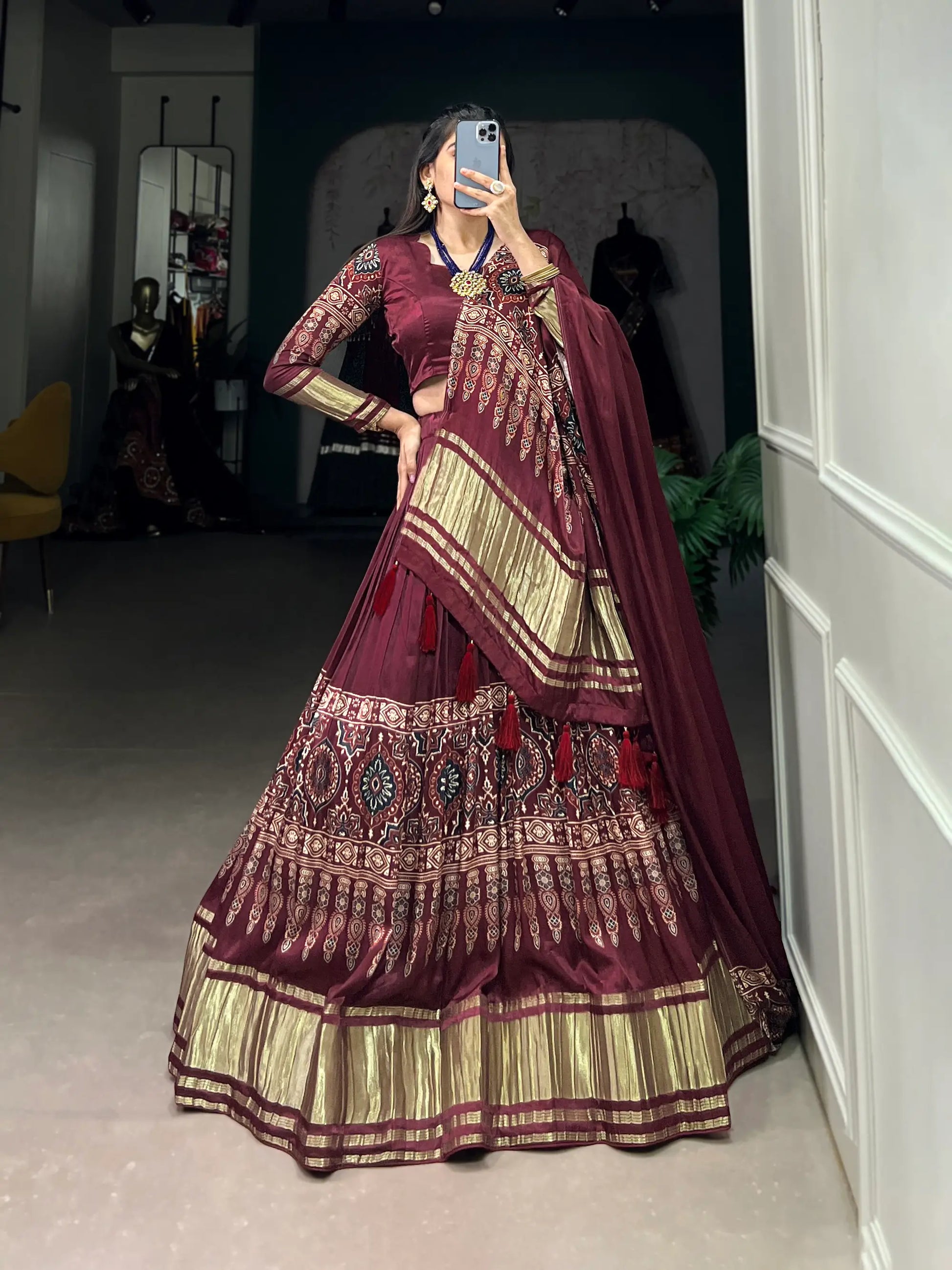 Maroon Traditionally Printed Gaji Silk Lehenga Choli