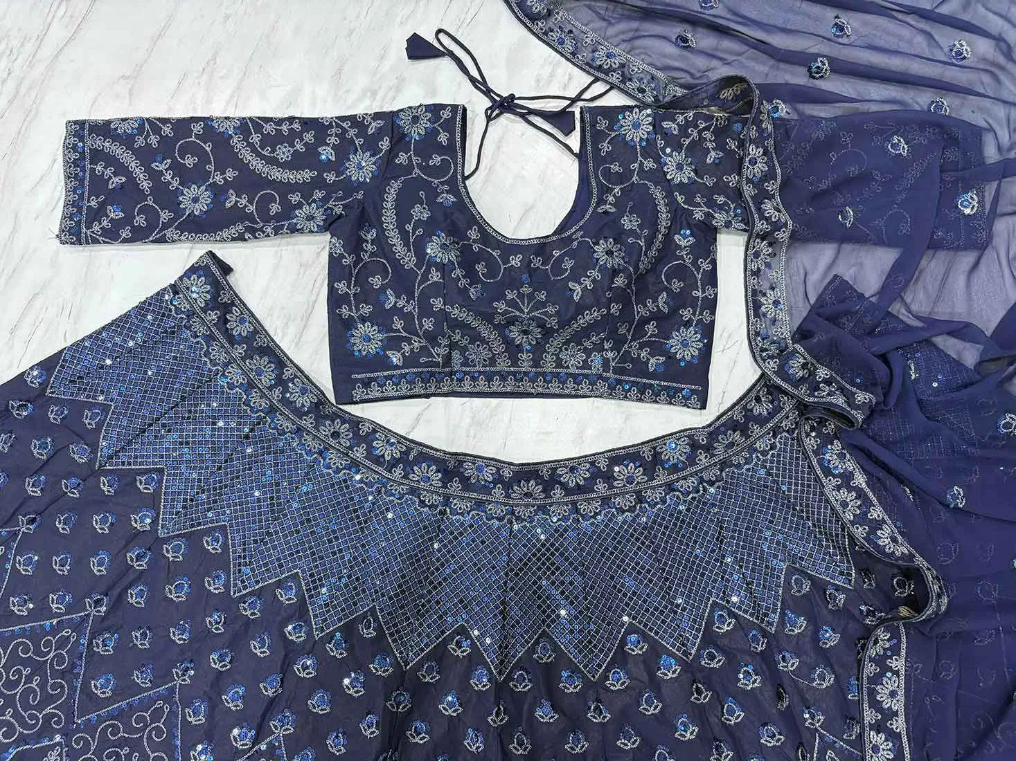 Navy Blue Glitter Dori Heavy Sequins Work Georgette Party Wear Lehenga