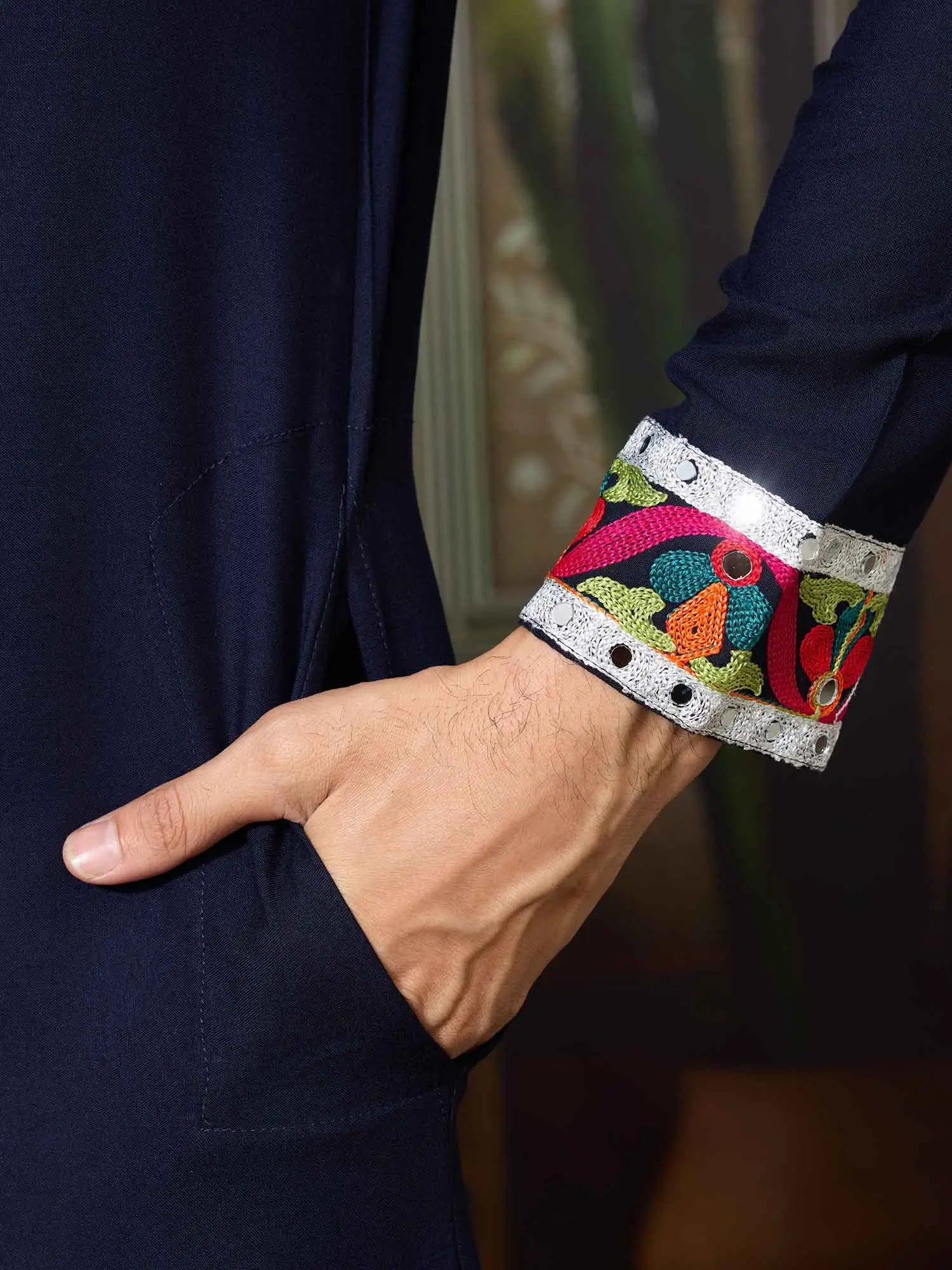 Celebrate Navratri in style with our new men’s kurta set! Crafted in soft cotton with intricate multi-thread and real mirror work, paired with comfortable cotton pants—perfect for festive garba nights.