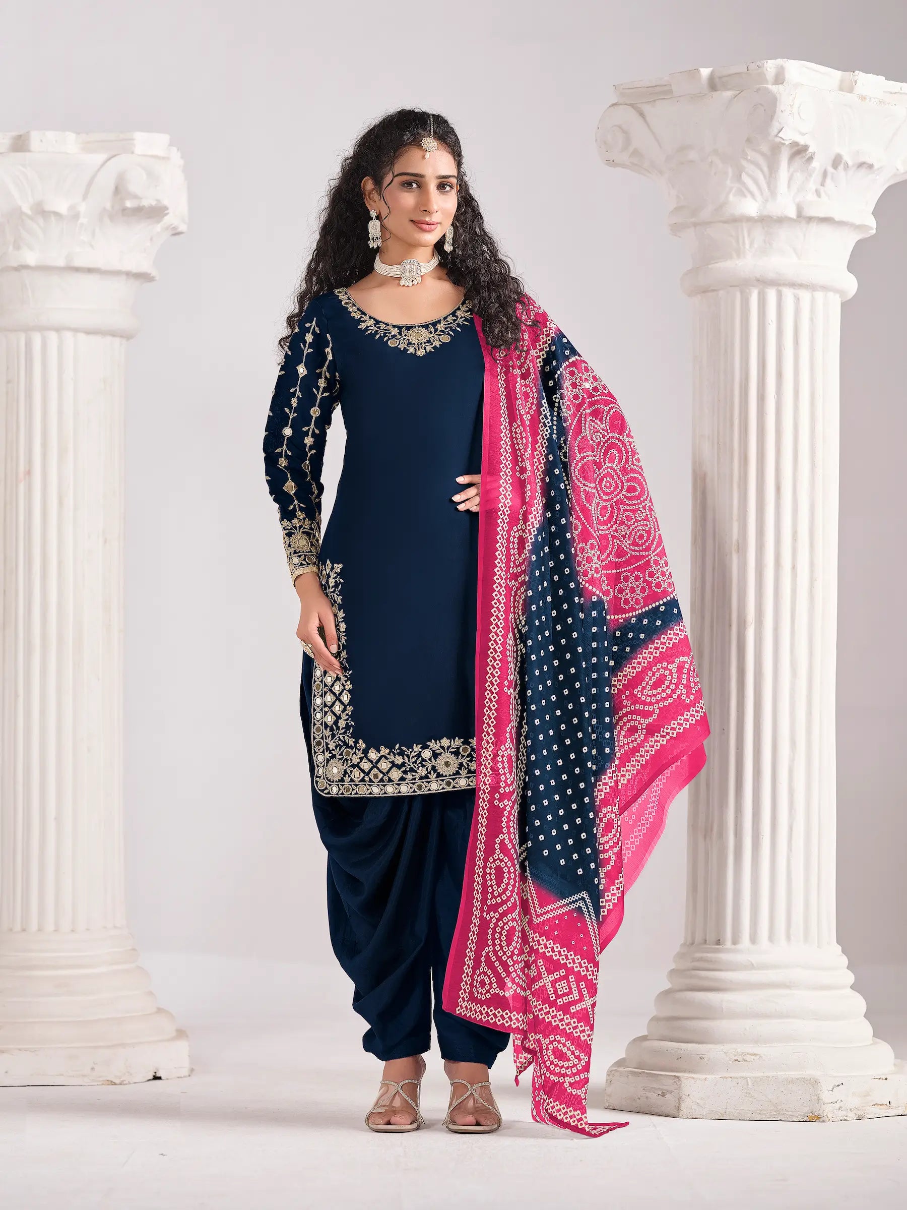 Navy Blue Silk Salwar Suit With Mirror Work & Embroidery