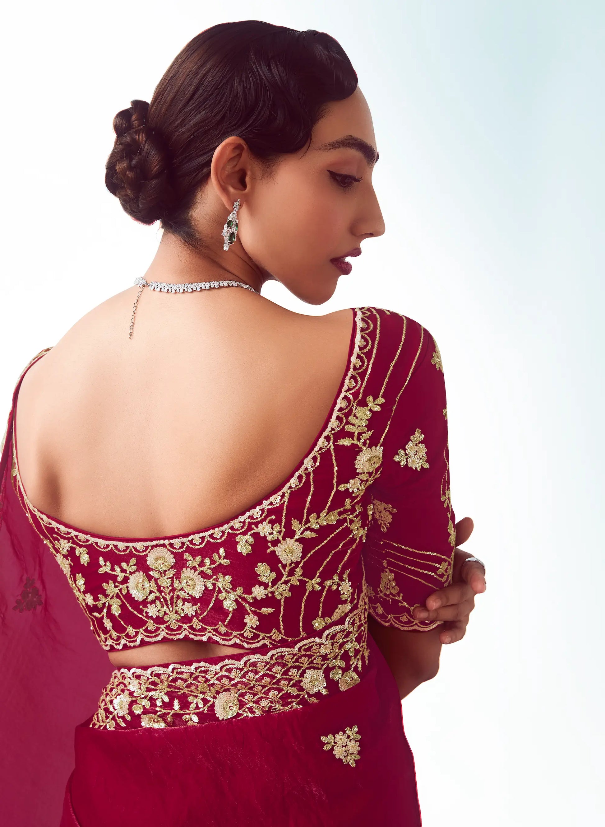 Paprika Red Party Wear Saree With Embroidery & Hand Work
