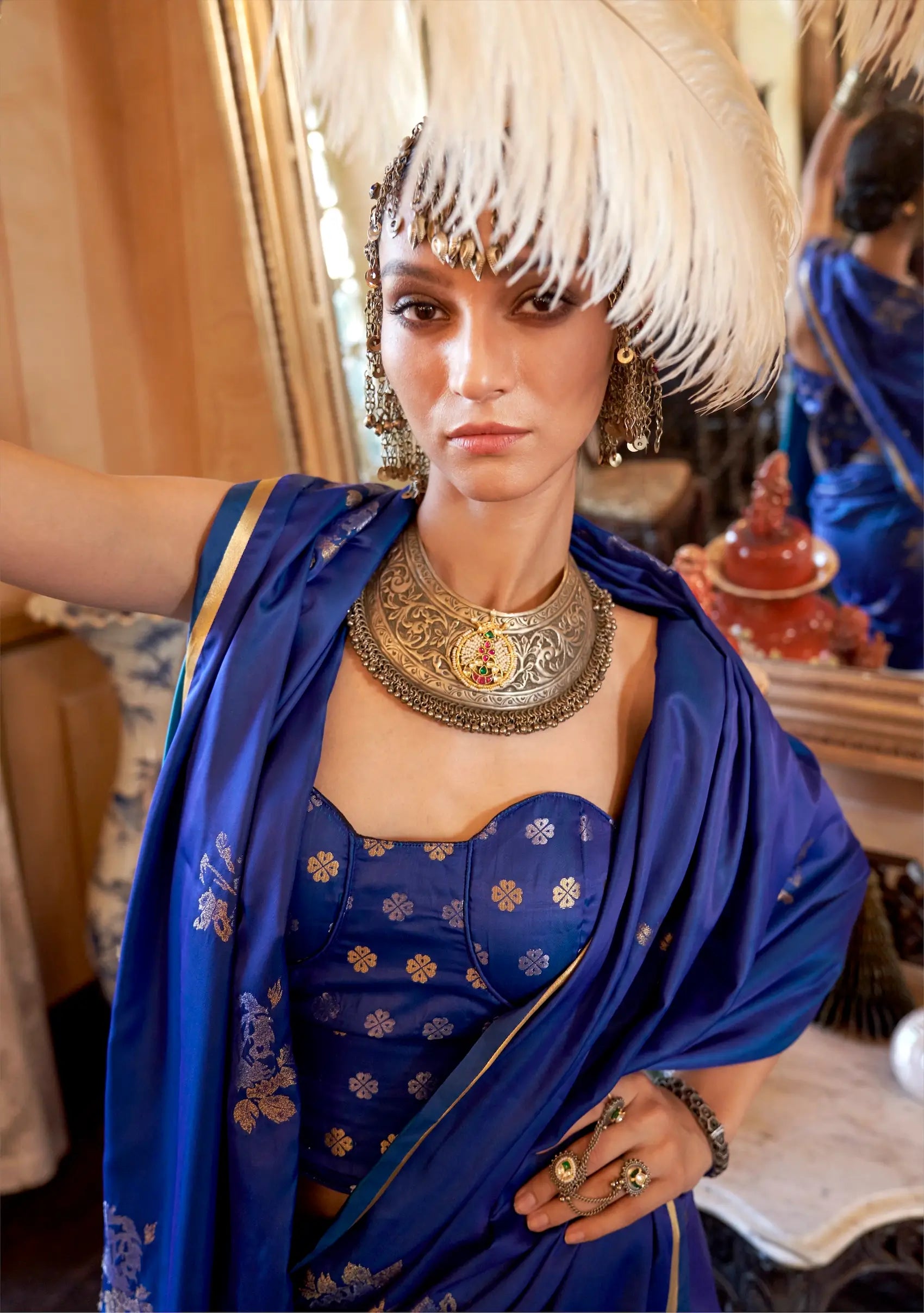 Peacock Blue Satin Handloom Zari Weaving silk Saree