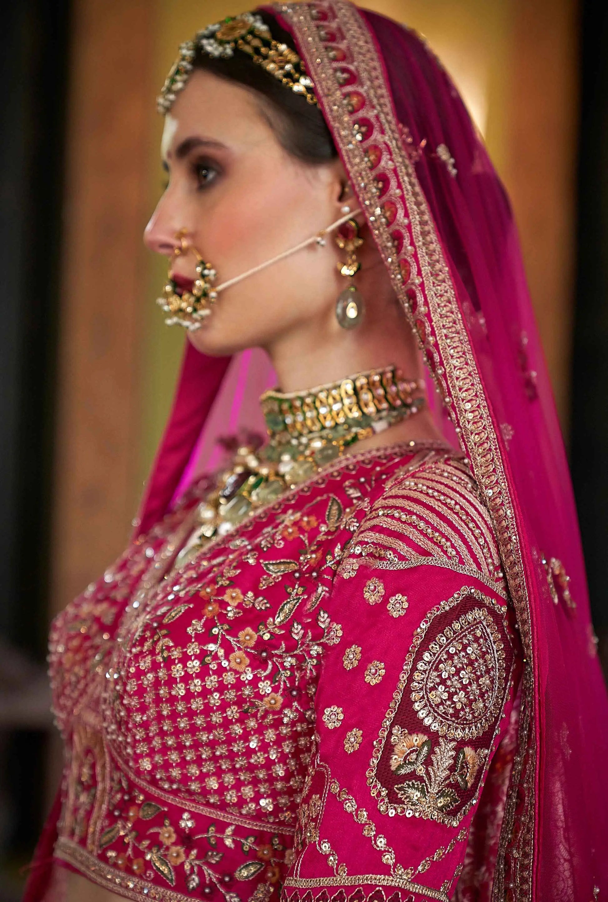 Pink Bridal Lehenga With Heavy Embroidery & Pearl Work