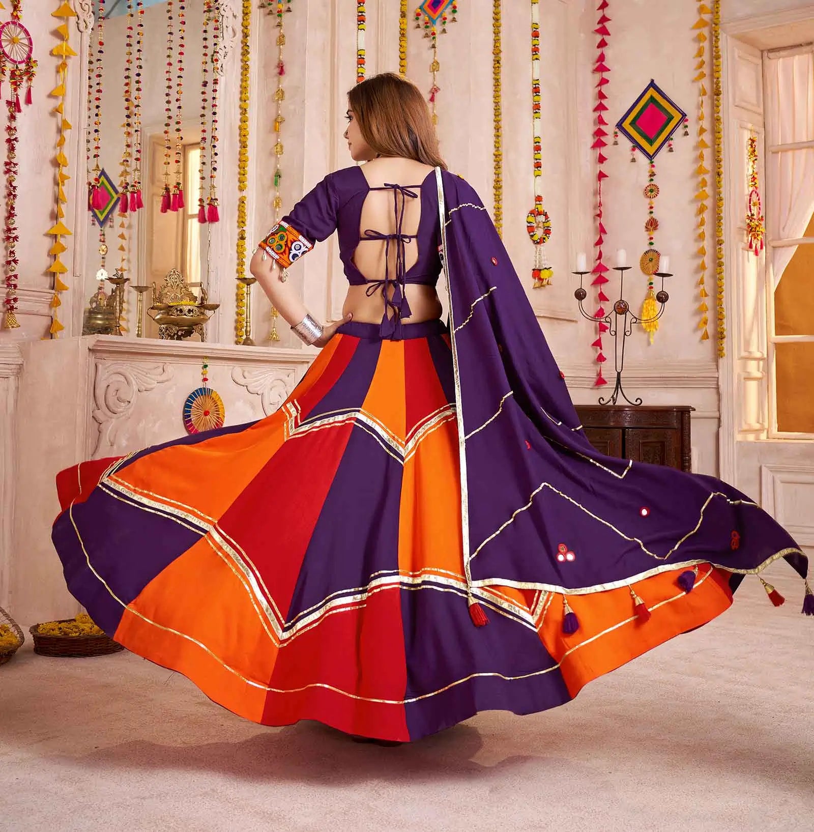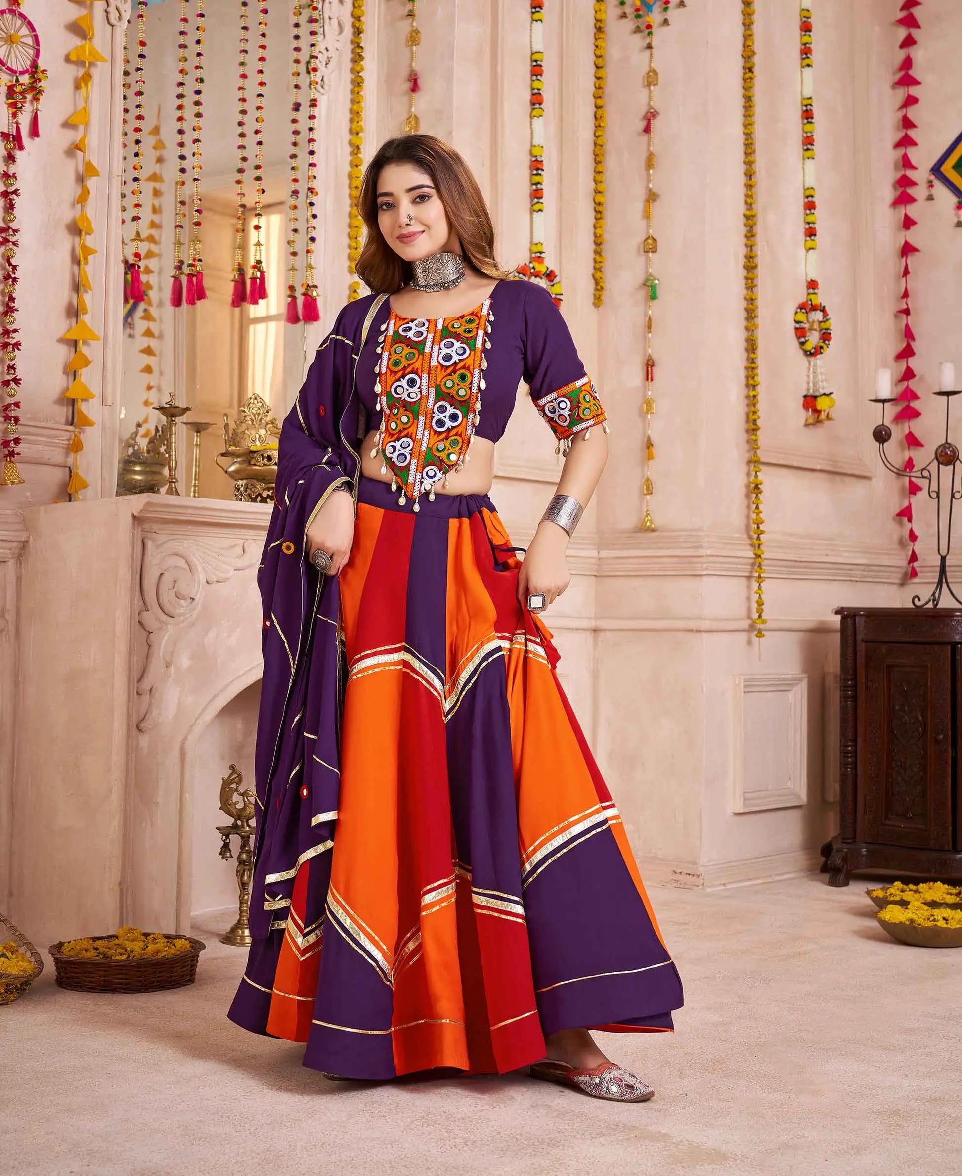 Purple With Multi Color Lehenga With Kutchi Mirror Work Choli For Navratri