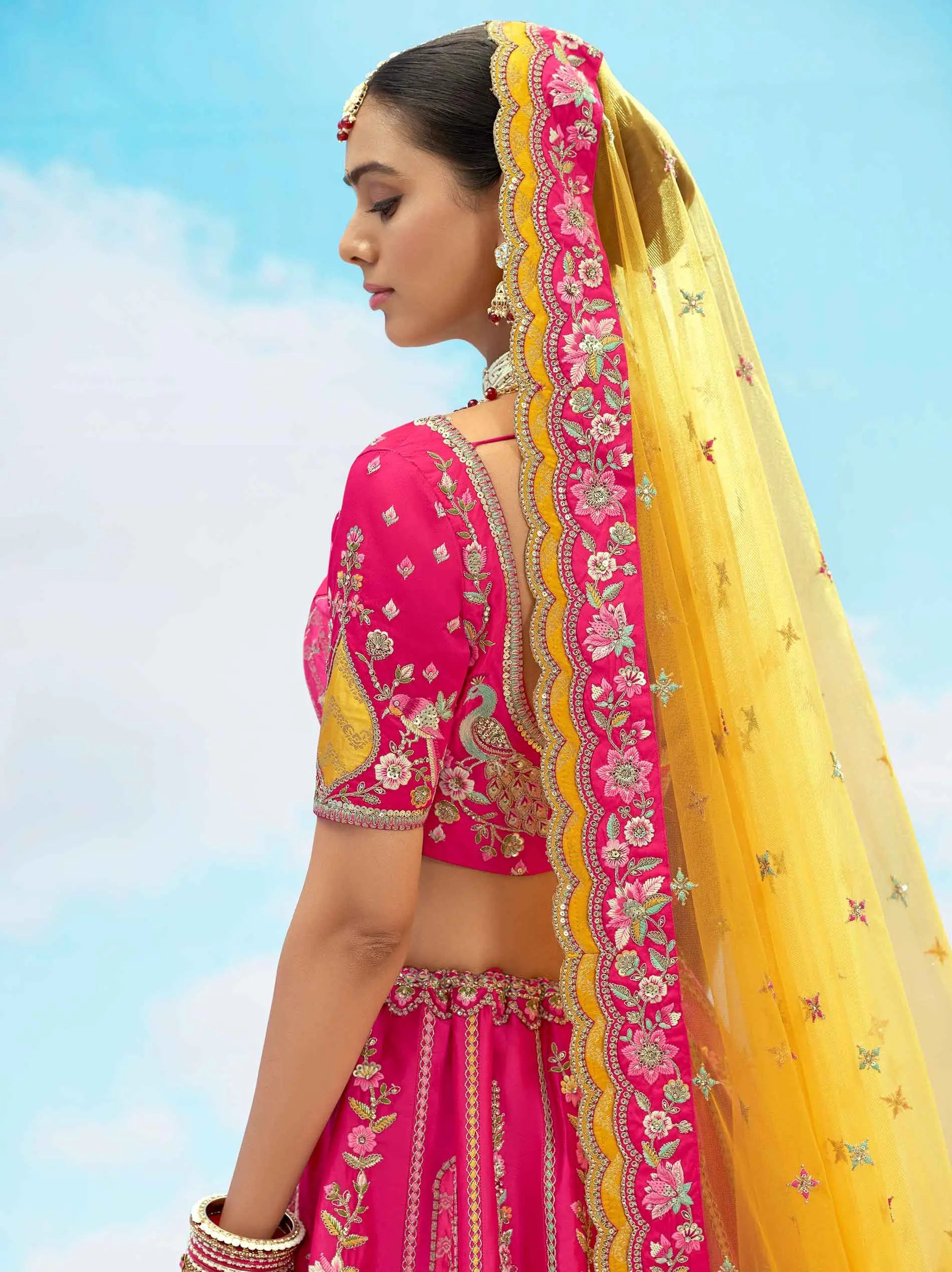 Rani pink Heavy Patch & Embroidery Work Lehenga For Bride