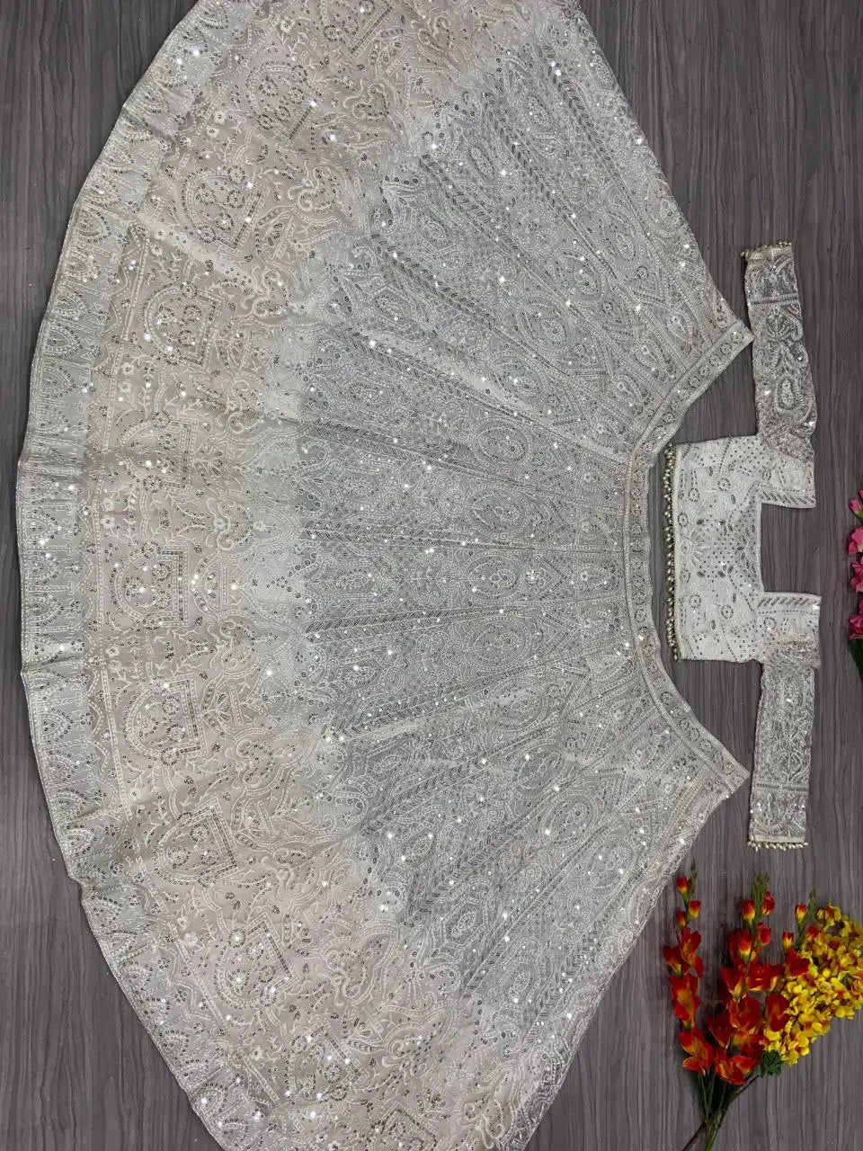 Sabyasachi White Net Lehenga With Thread Embroidery Coding Work Sequins Work