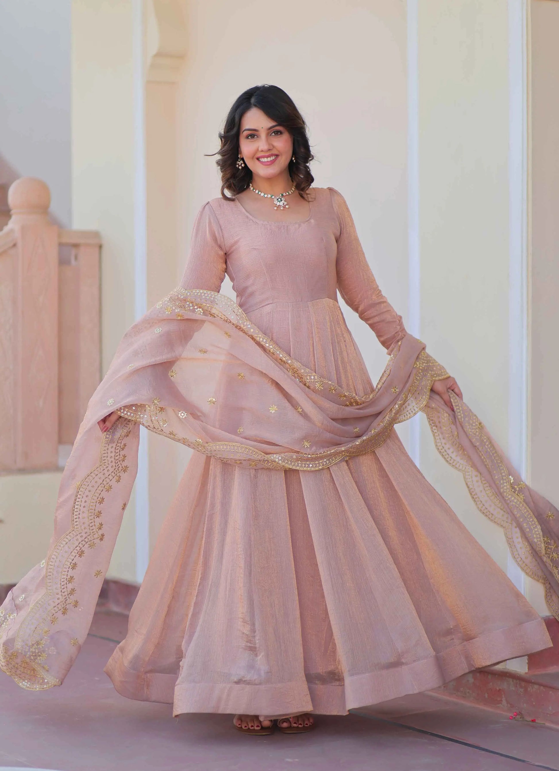 We are thrilled to unveil our latest Gown Collection, Crafted from fendi fabric, each gown offers a luxurious yet comfortable feel. A same fabric dupatta with sequins work add a touch of elegance. Perfect for weddings, festivals, or any special occasion, this collection blends style with ease effortlessly.