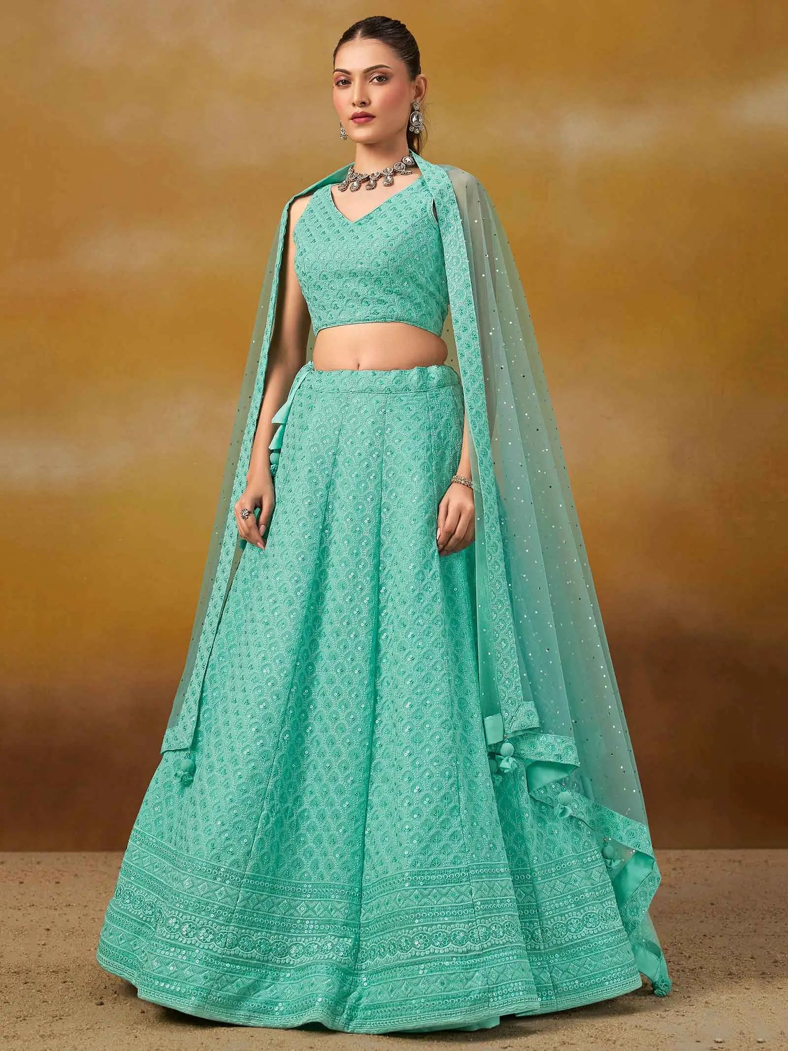 Sky Blue Designer Lehenga With Sequins Embroidery Work And Dupatta