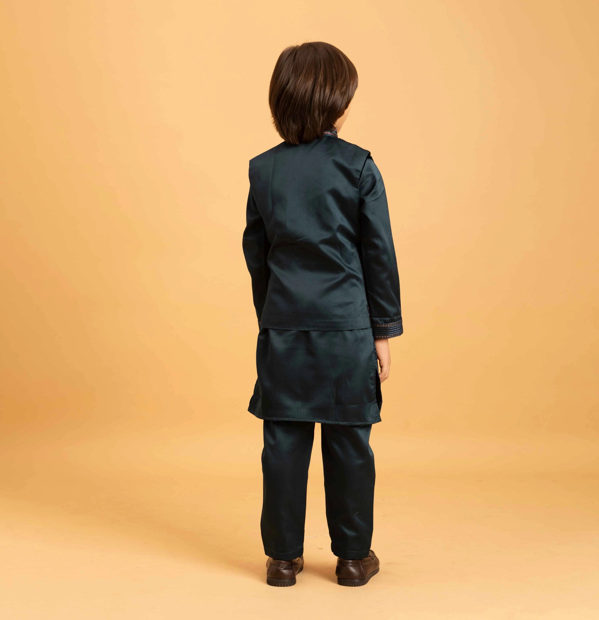 Teal Green Kurta Set With Mirror & Sequins Embroidered Koti
